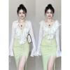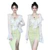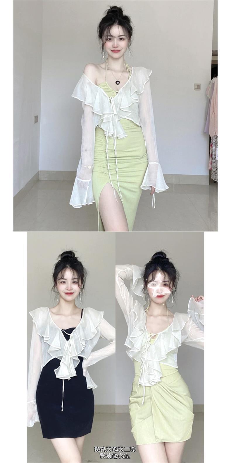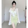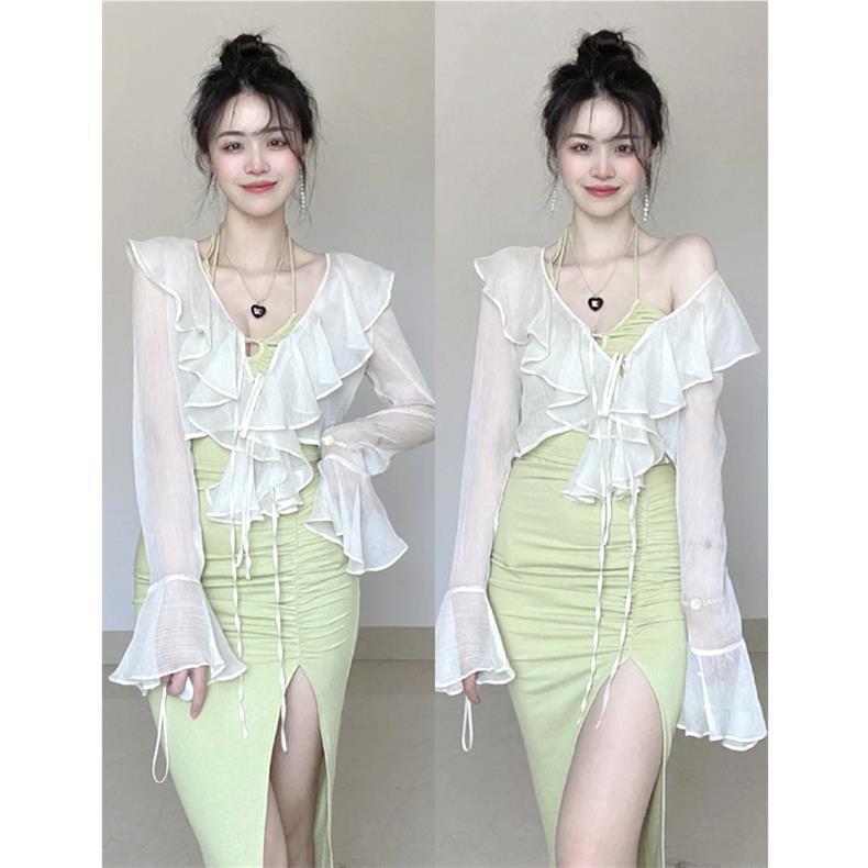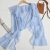 Nova roupa de verão com babados em chiffon e protetor solar, saia com alça, xale pequeno, cardigan curto respirável