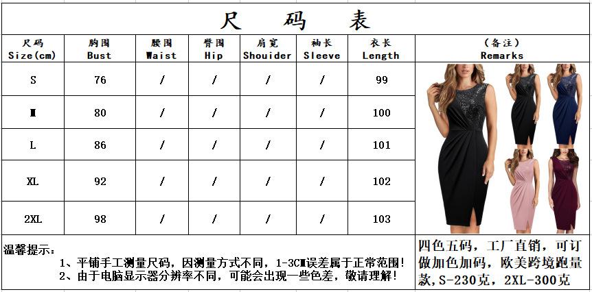 Vestido de fiesta ajustado con abertura y costuras de lentejuelas sin mangas de color sólido nuevo de Amazon para mujer, transfronterizo europeo y americano