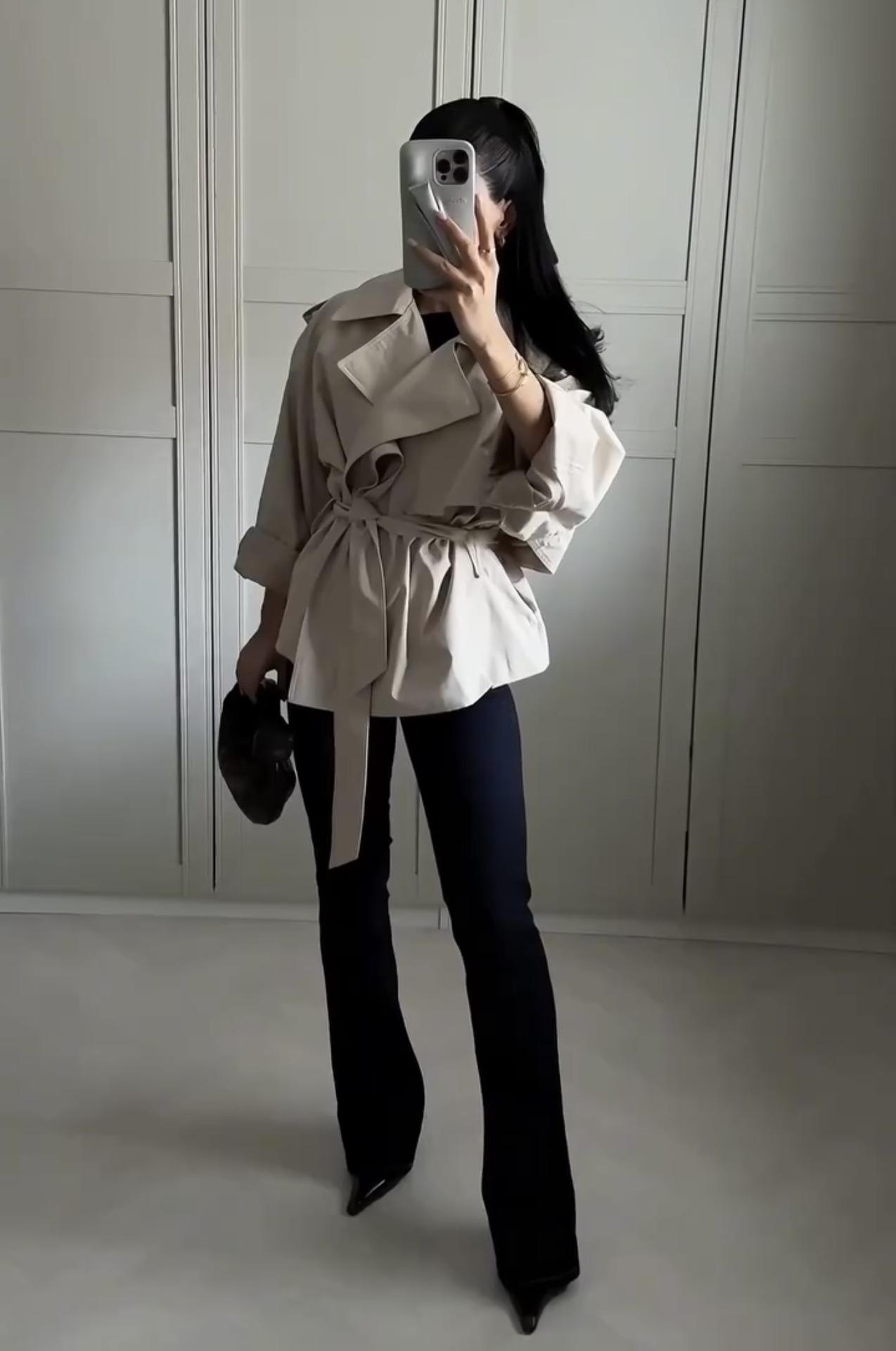 Chaqueta corta informal con cordones y cintura alta para mujer europea y americana, con explosión de moda en AliExpress.