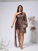 Compra Productos Nuevos para Mujer de Talla Grande Europea y Americana en Stock Vestido Elegante Elegante con Cuello Inclinado de un Hombro con Lentejuelas y Cintura Ajustada al por mayor en Joom.pro