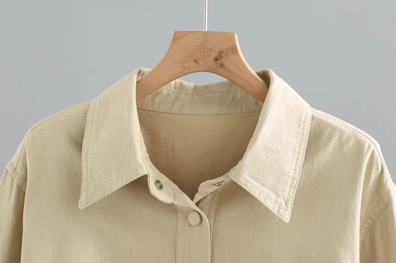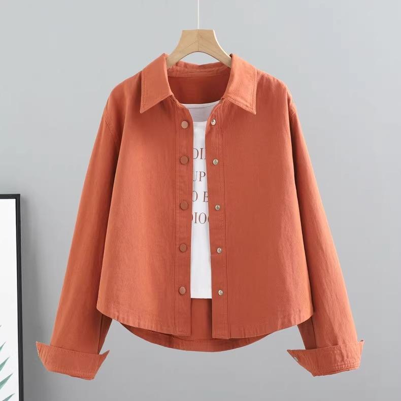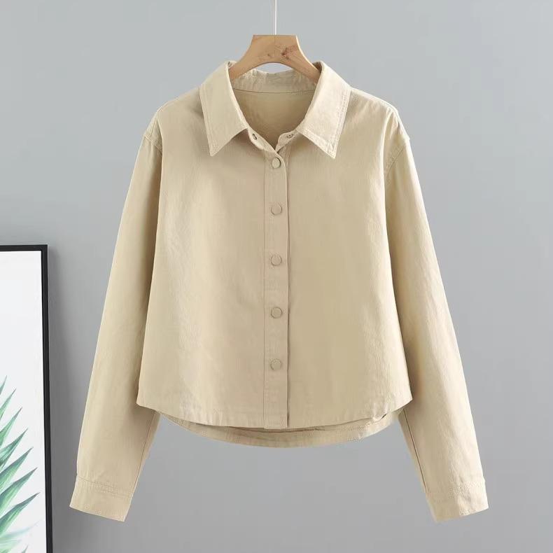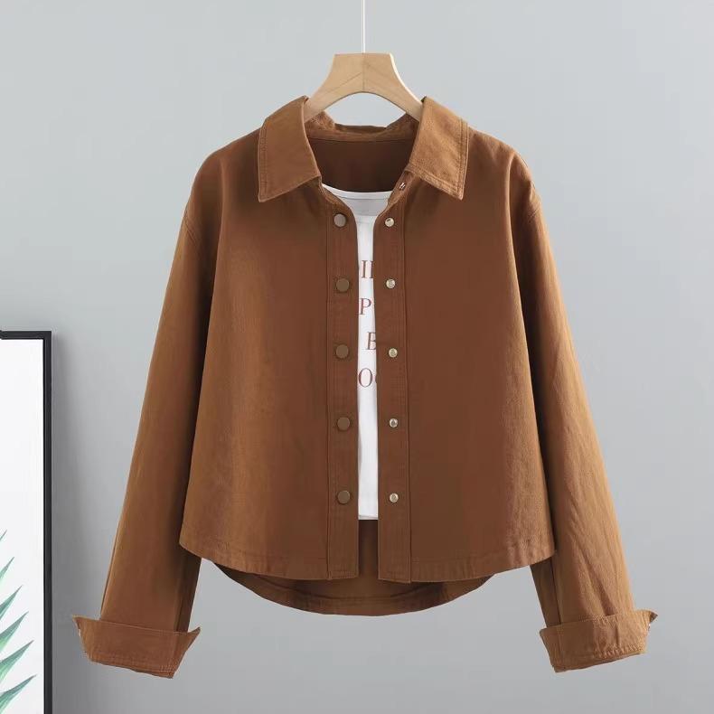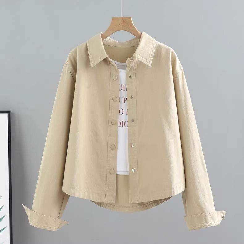Chaqueta Corta de Mezclilla de Algodón Puro para Mujer, Nueva Camisa Versátil de Manga Larga Estilo Coreano de Otoño, Chaqueta de Ropa de Trabajo para Mujer A3391