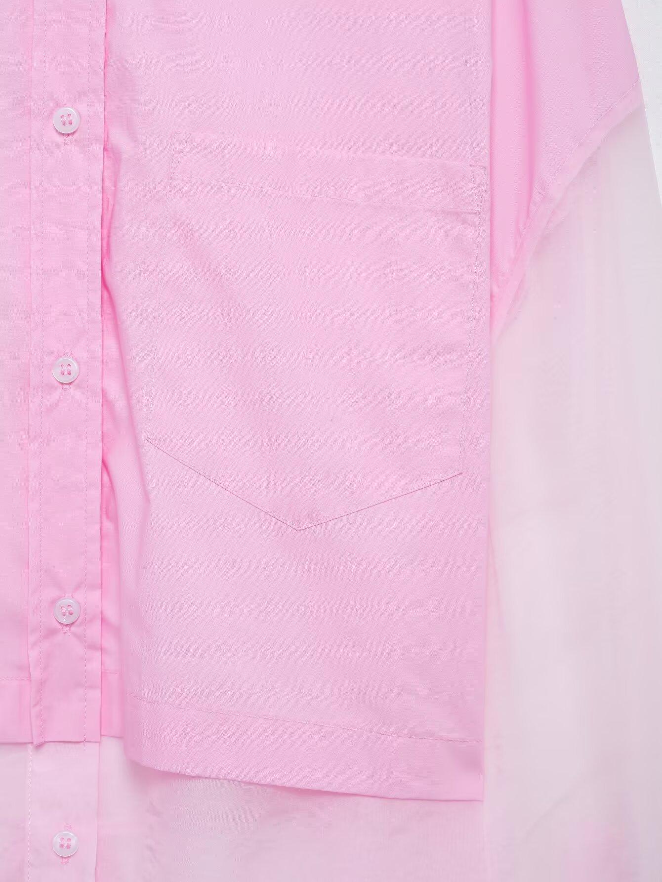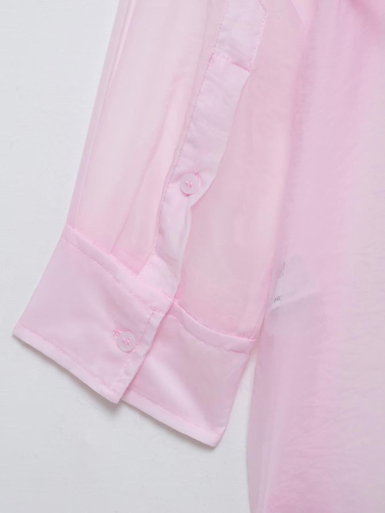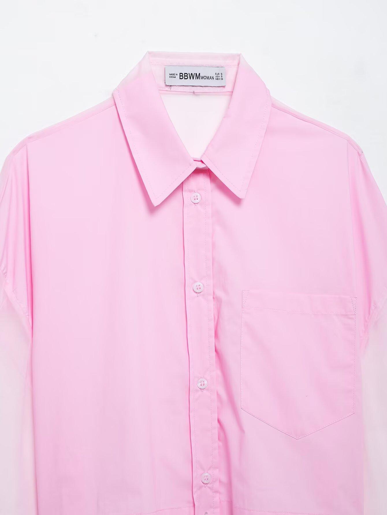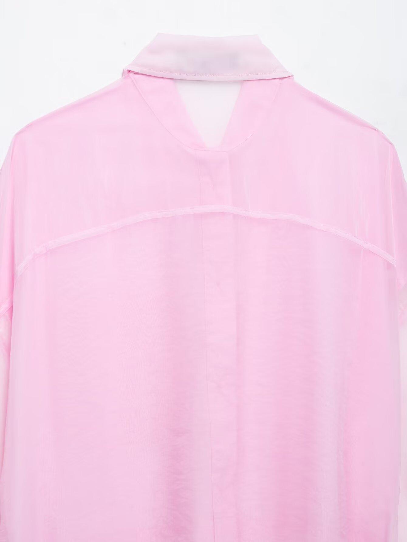 Ropa de Verano para Mujer Transfronteriza 2025 Estilo Europeo y Americano Nueva Moda Casual Holgada Transparente Tejido Duro Costuras Camisa A36095