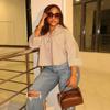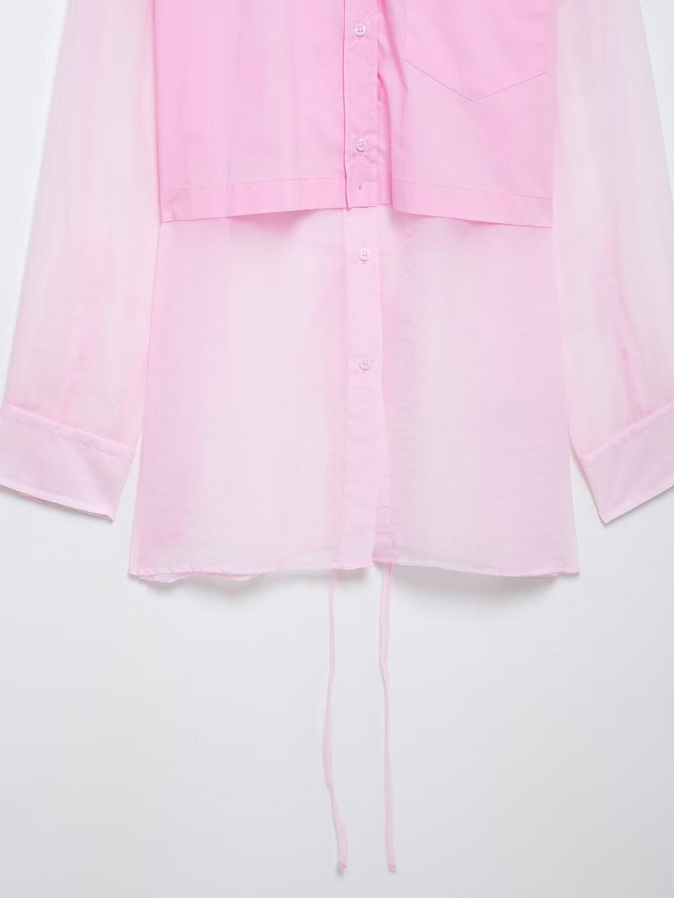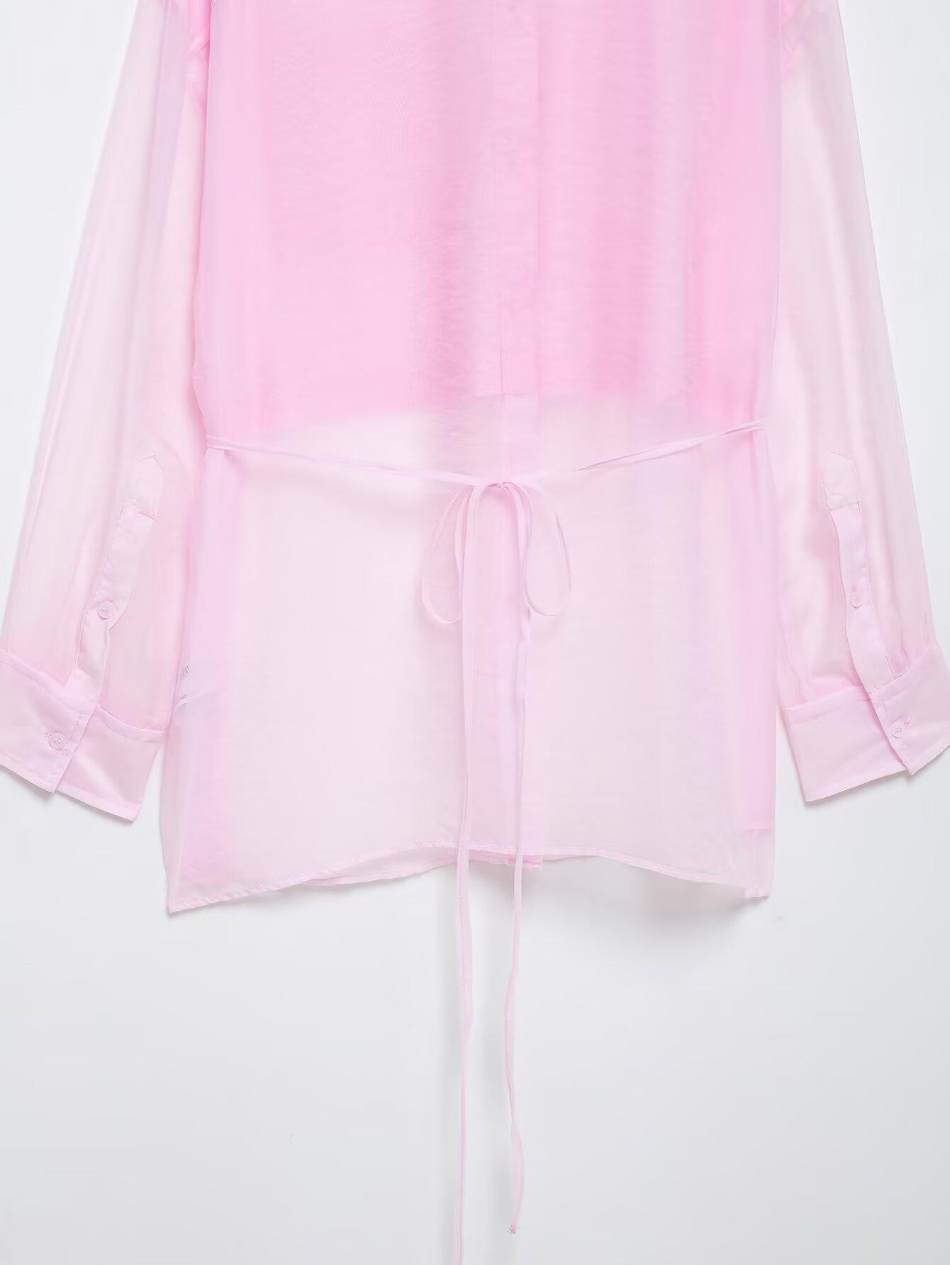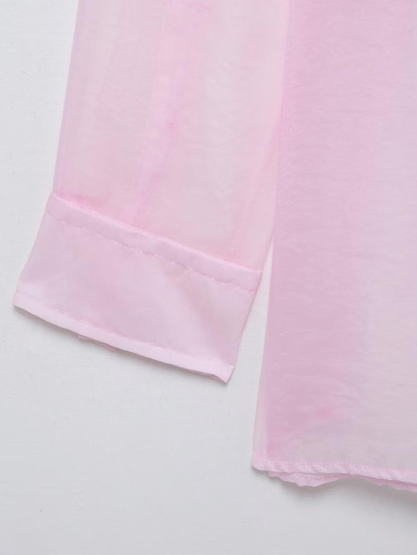 Ropa de Verano para Mujer Transfronteriza 2025 Estilo Europeo y Americano Nueva Moda Casual Holgada Transparente Tejido Duro Costuras Camisa A36095