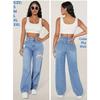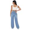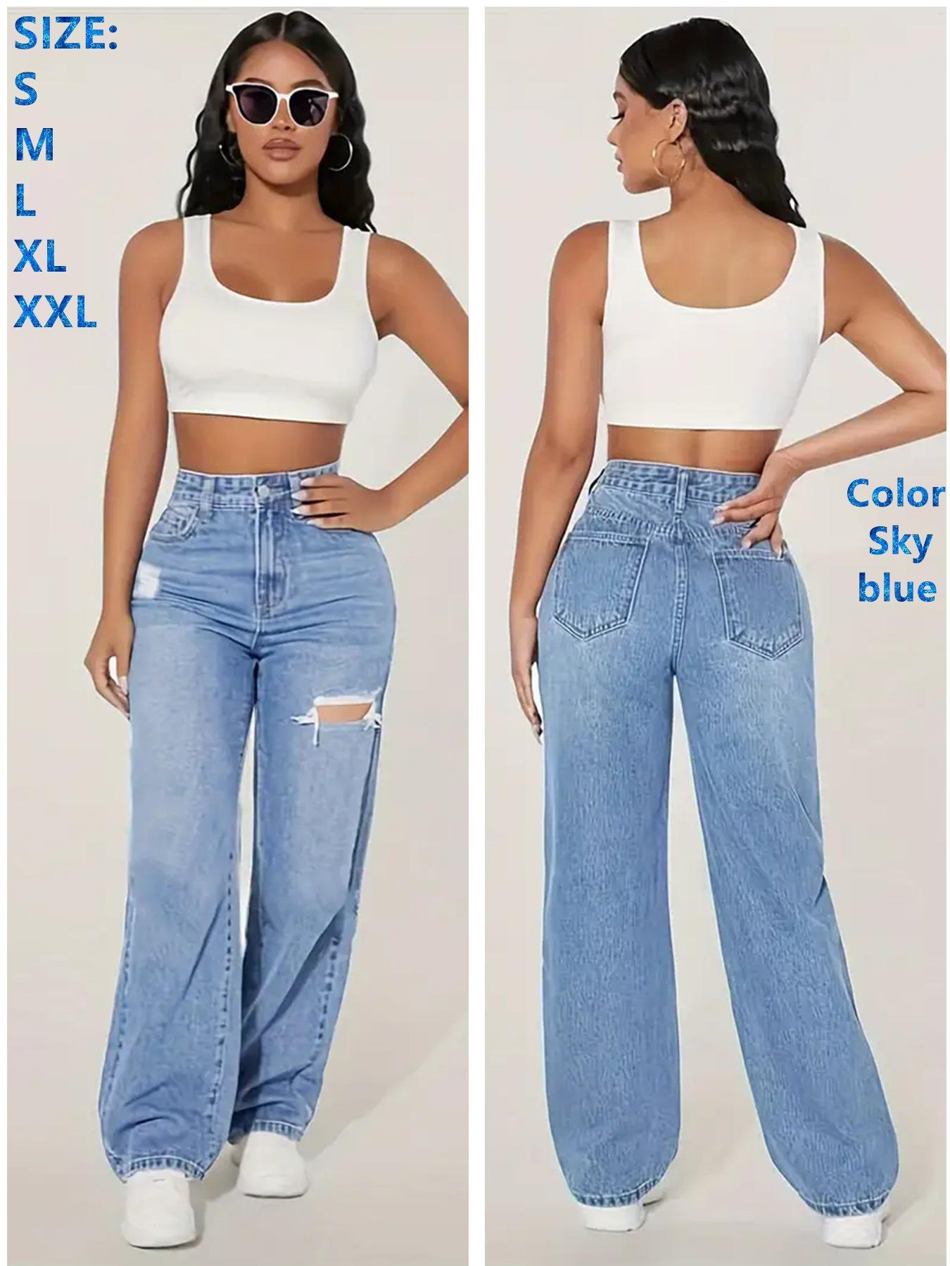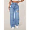 2025 Nuevo Amazon Más Vendido Jeans Rectos de Pierna Ancha Rotos para Mujer azul claro Cintura Alta Pantalones de Moda para Mujer
