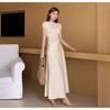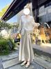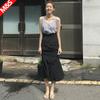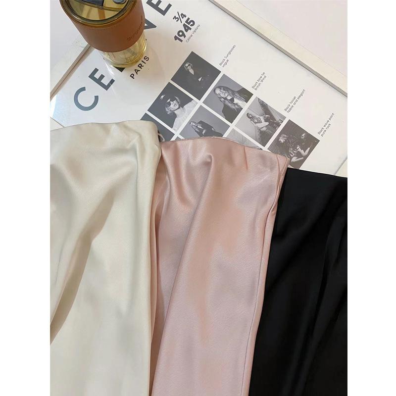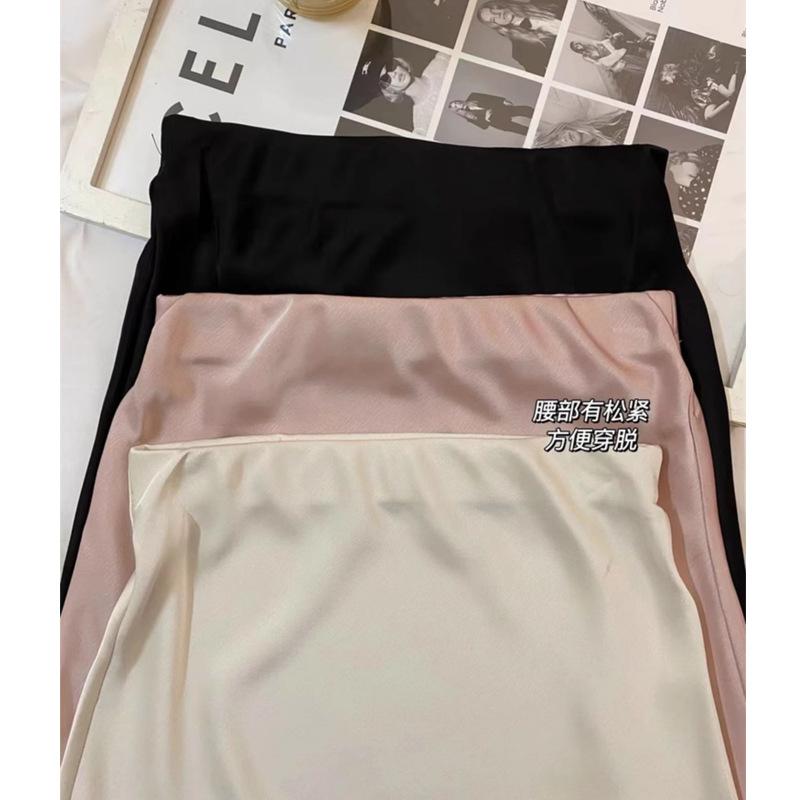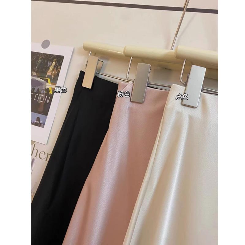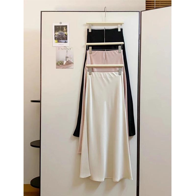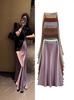 Falda Larga de Satén Francés con Textura de Cola de Pez de Cintura Alta Diseño Retro de Verano y Otoño Falda A-Line de Cintura Elástica