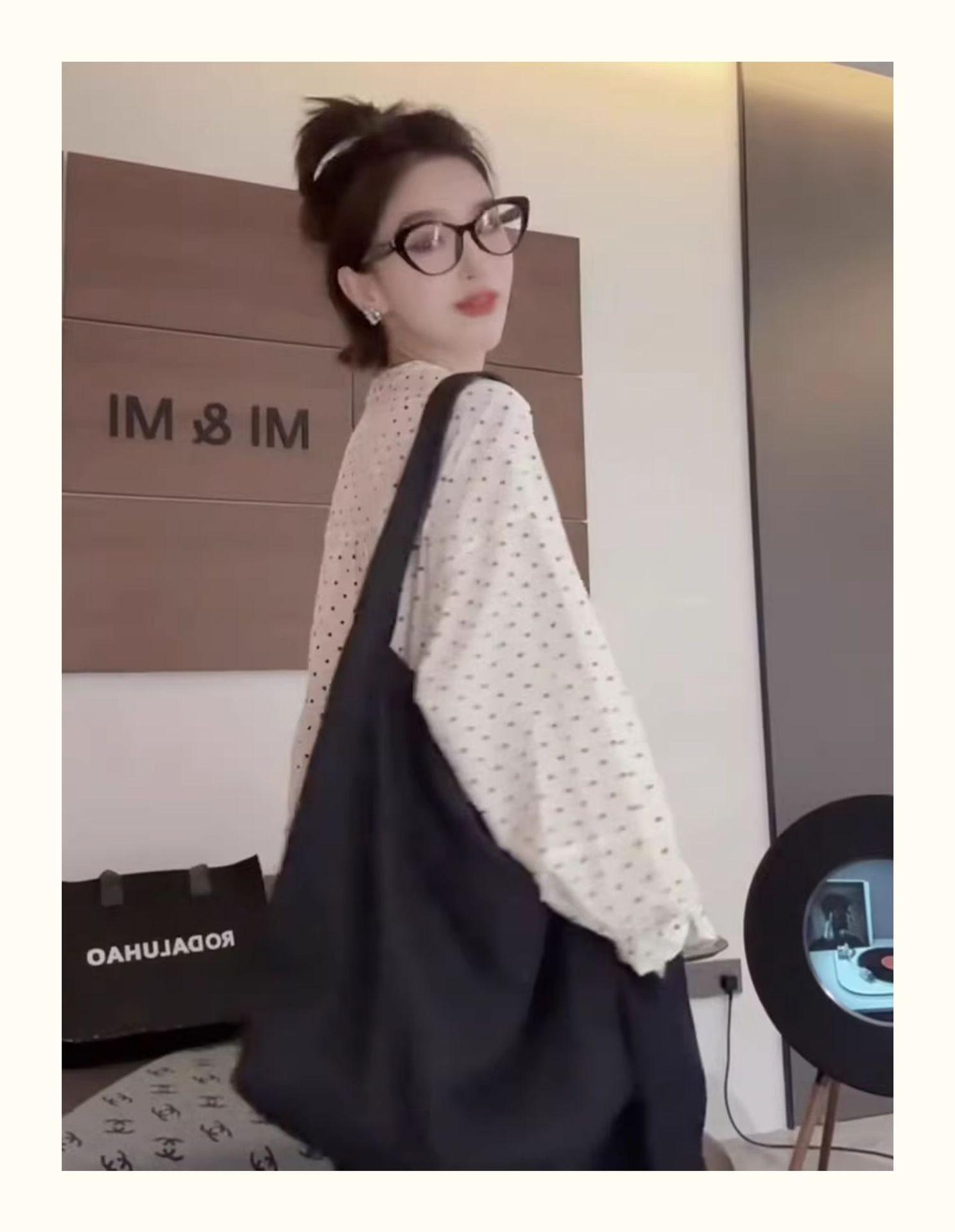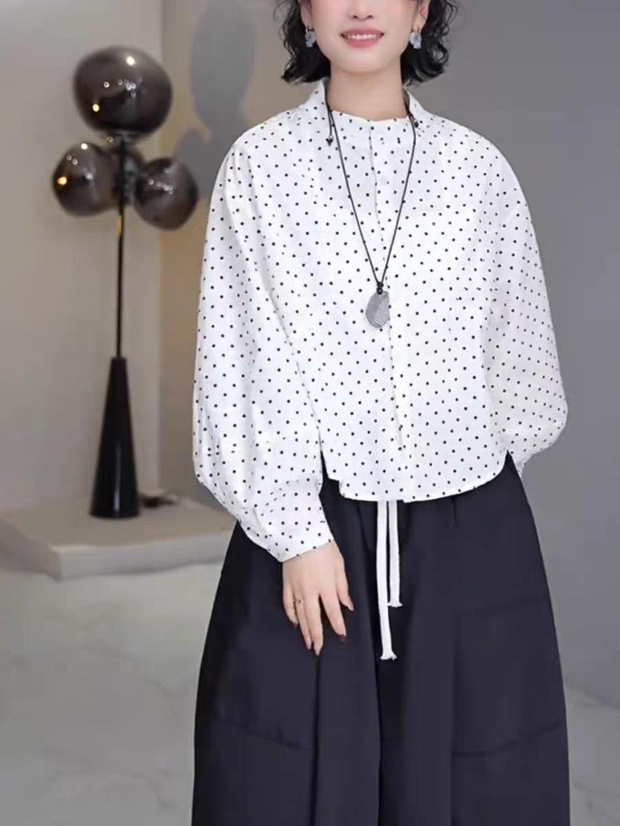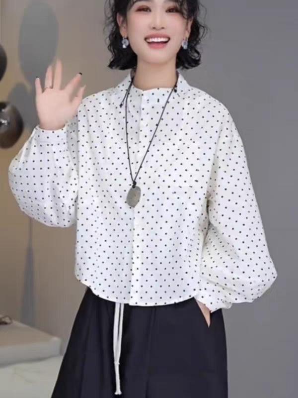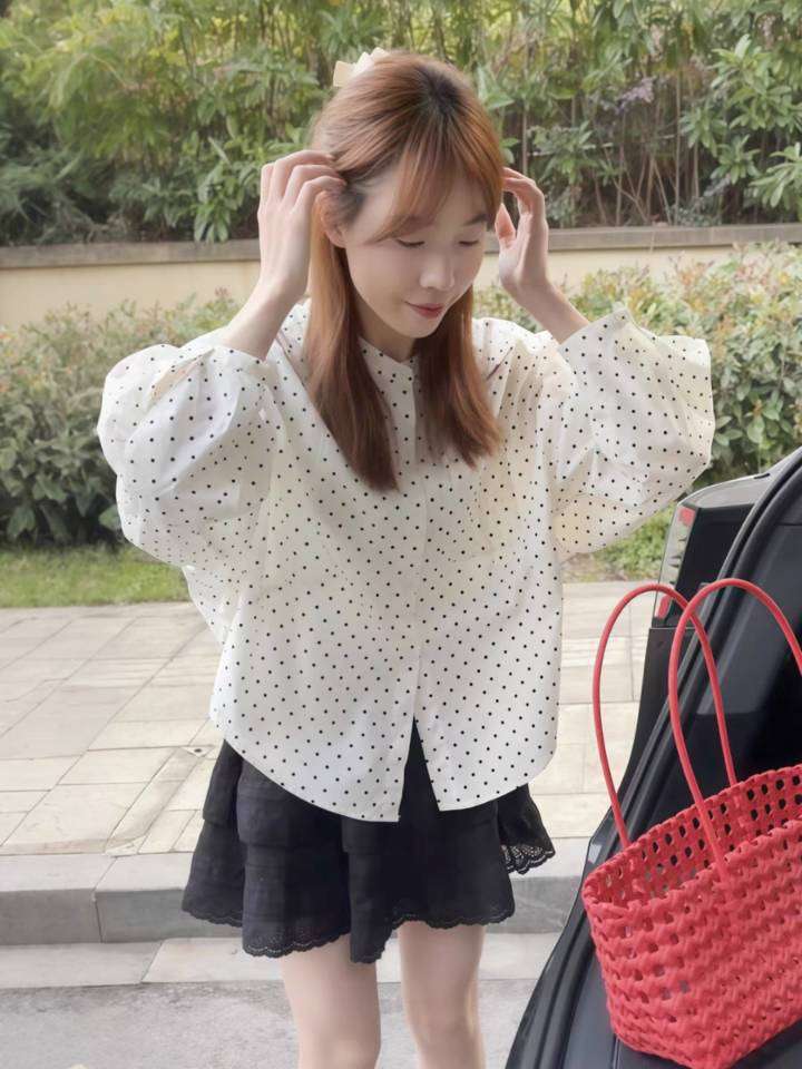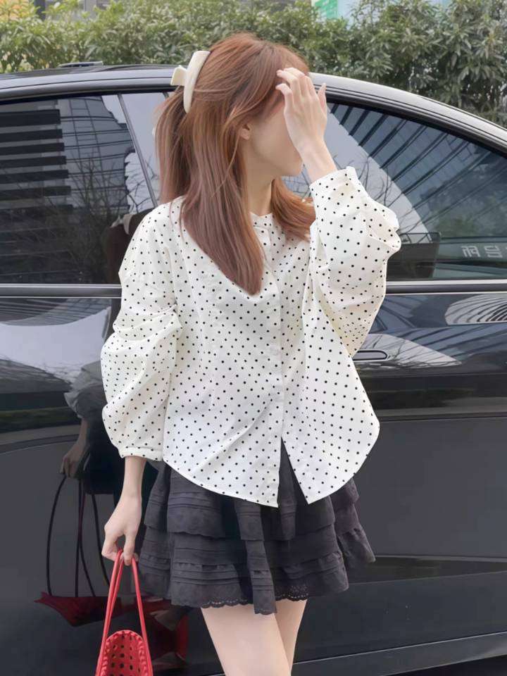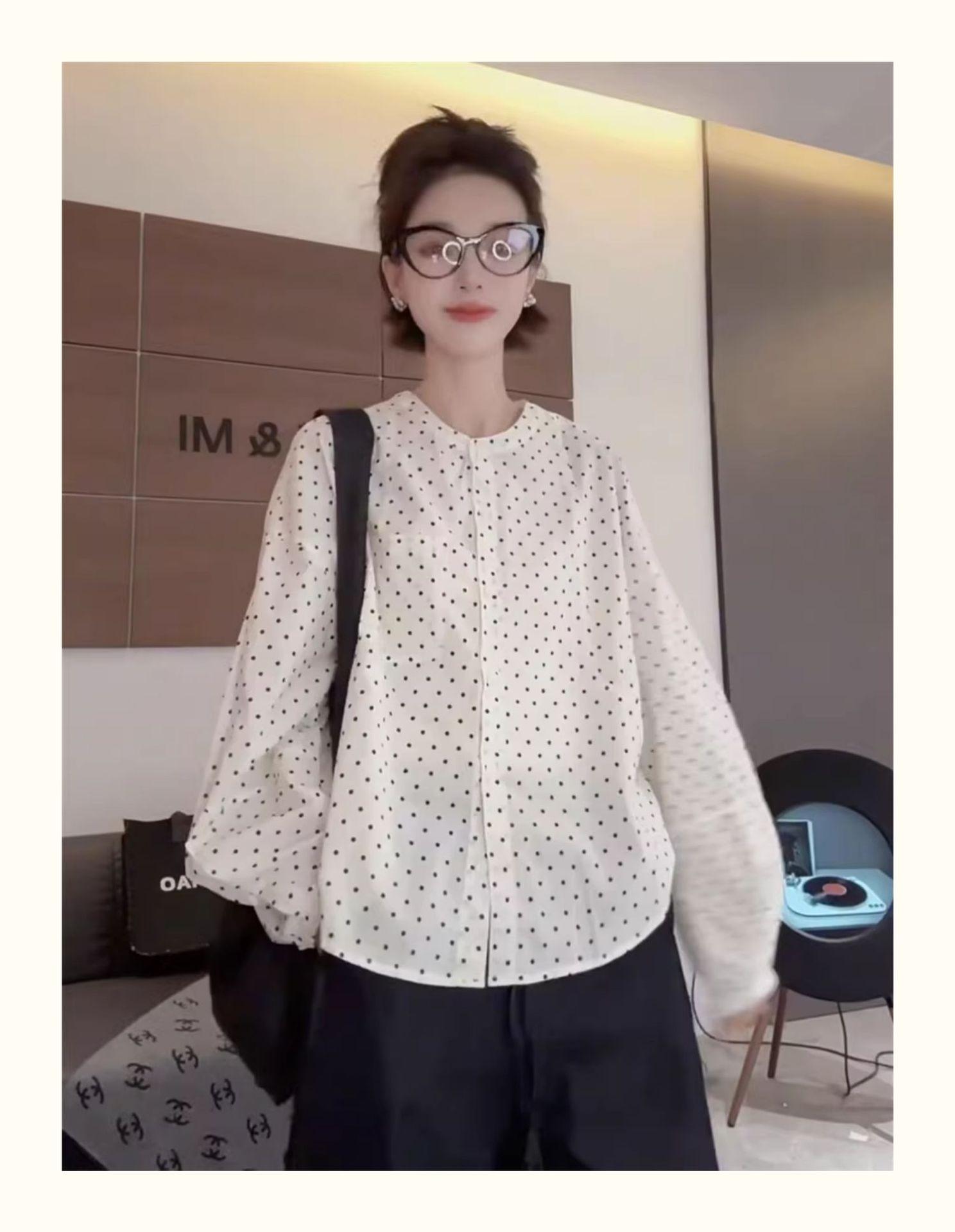 Camisa de cuello redondo dulce de moda para mujer, primavera y otoño 2025, nueva camisa coreana informal holgada con lunares, elegante y combinable.