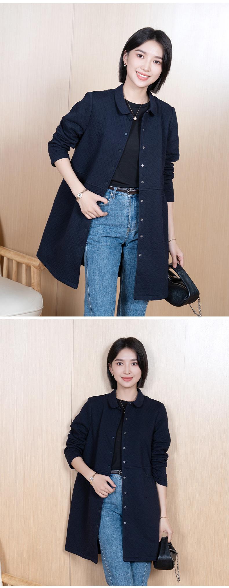 Abrigo YUN Yun de primavera para mujer, de solapa, sin forro, de longitud media, para desplazamientos diarios, de color liso, informal, holgado, cortavientos para mujer