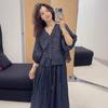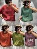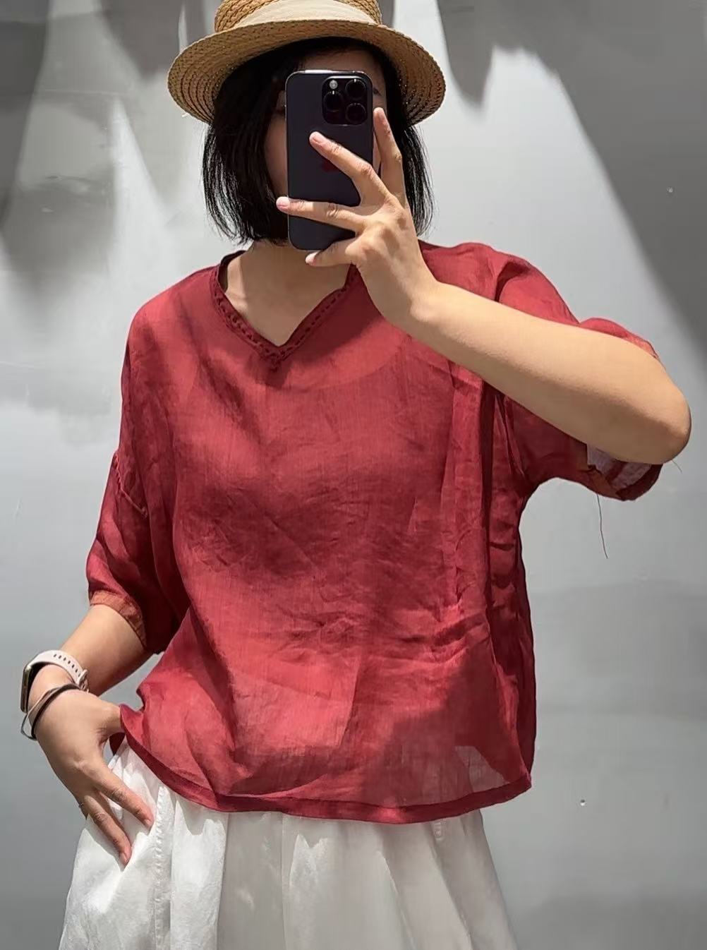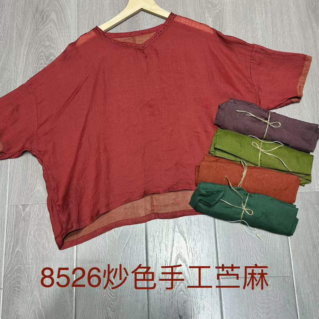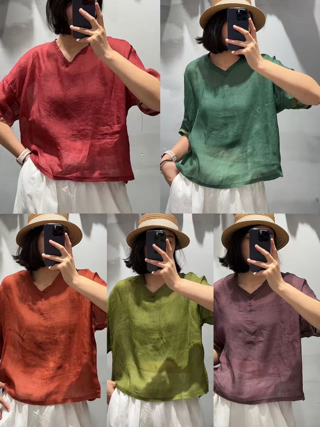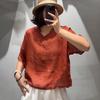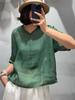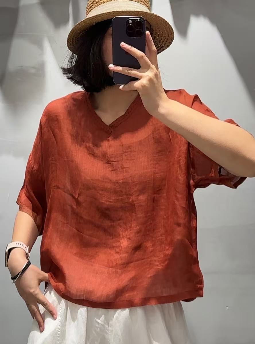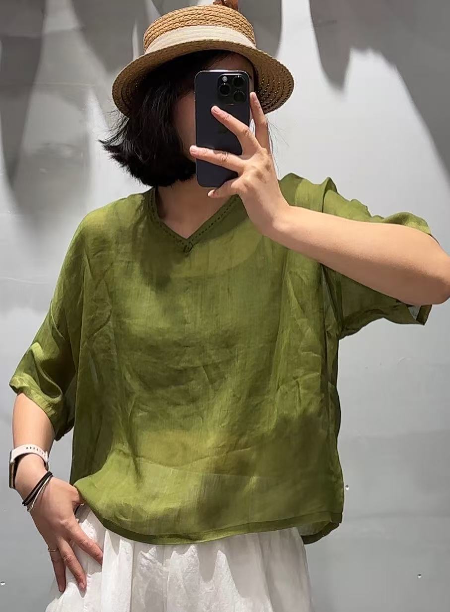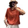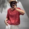 Camisa de ramio para mujer, verano 2025, estilo retro artístico, cuello en V, suelta, adelgazante, 8526