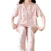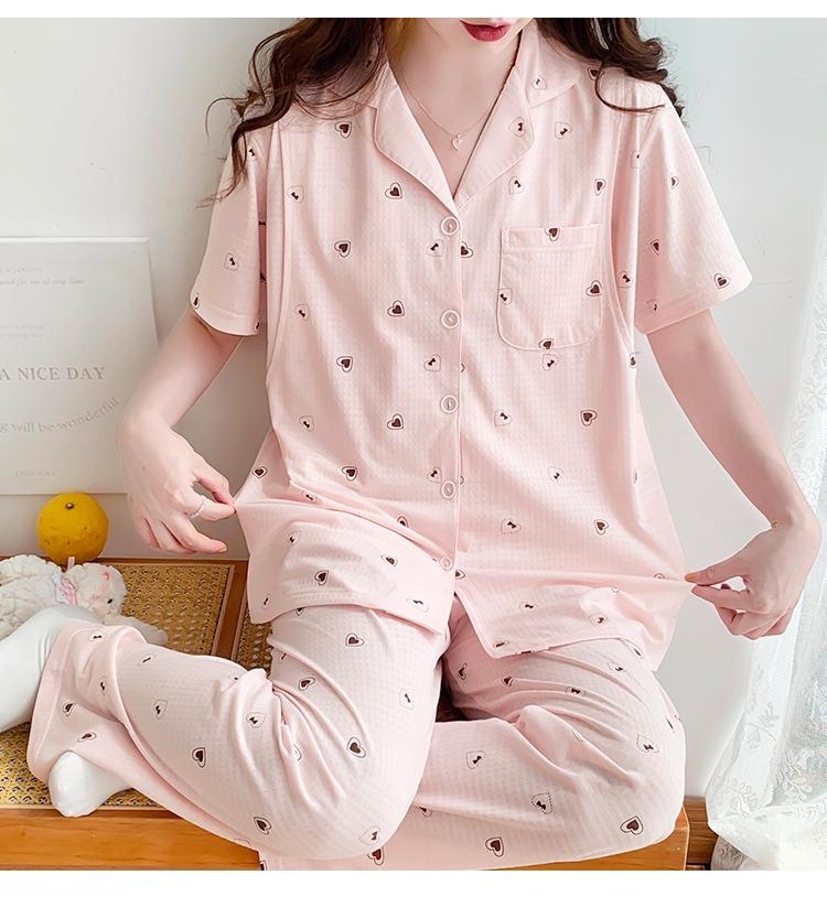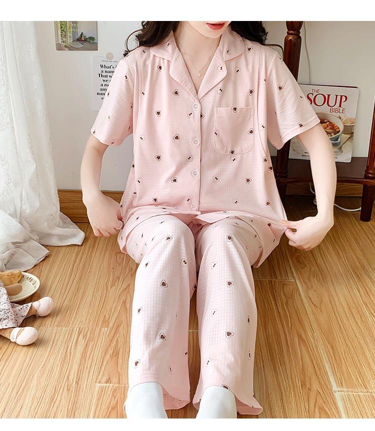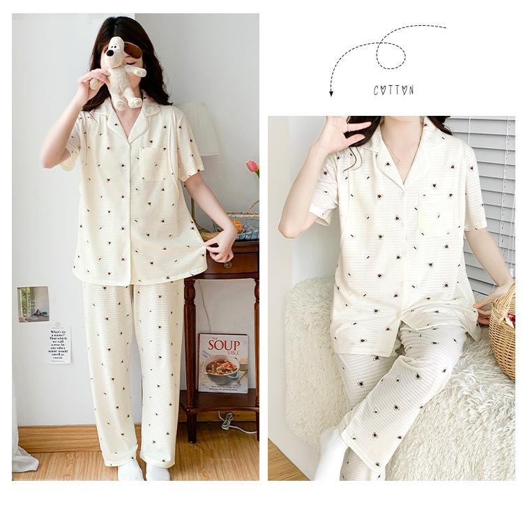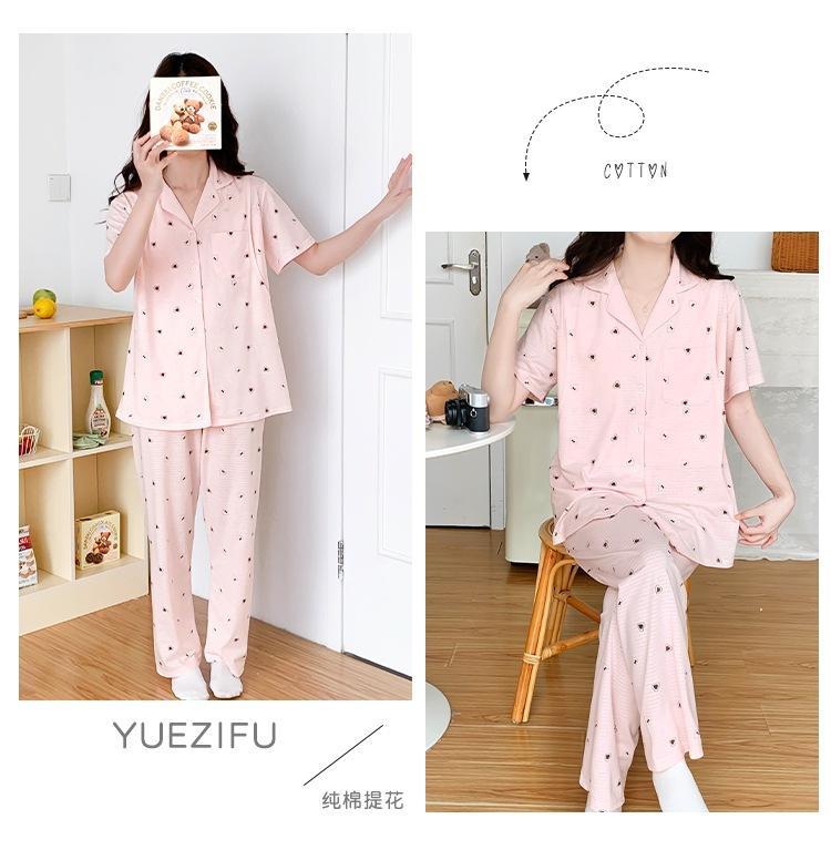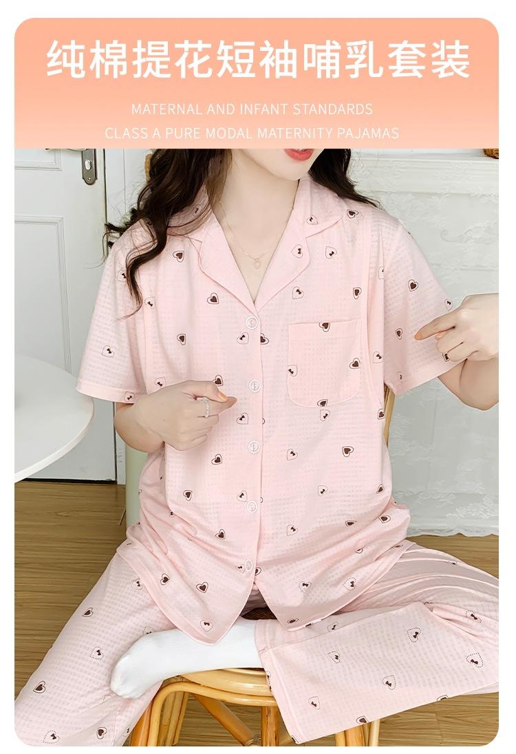 Pantalones de manga corta con solapa de jacquard y gofre para embarazadas, ropa mensual, pijama de lactancia posparto, traje absorbente de sudor, venta al por mayor, en stock