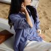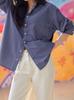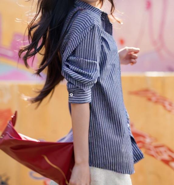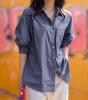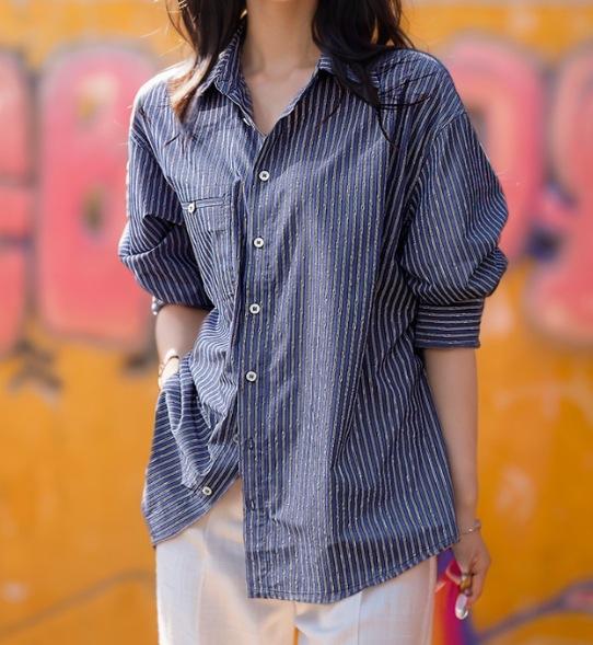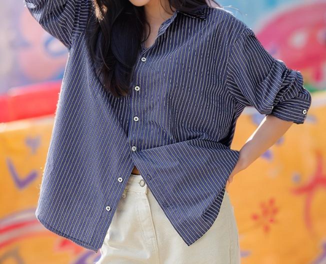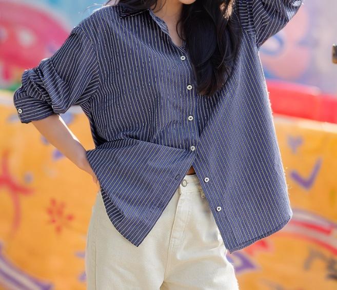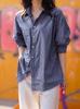 Camisa informal de manga larga con bolsillos y rayas azules y blancas para mujer, elegante, para uso diario, primavera y otoño, 2025