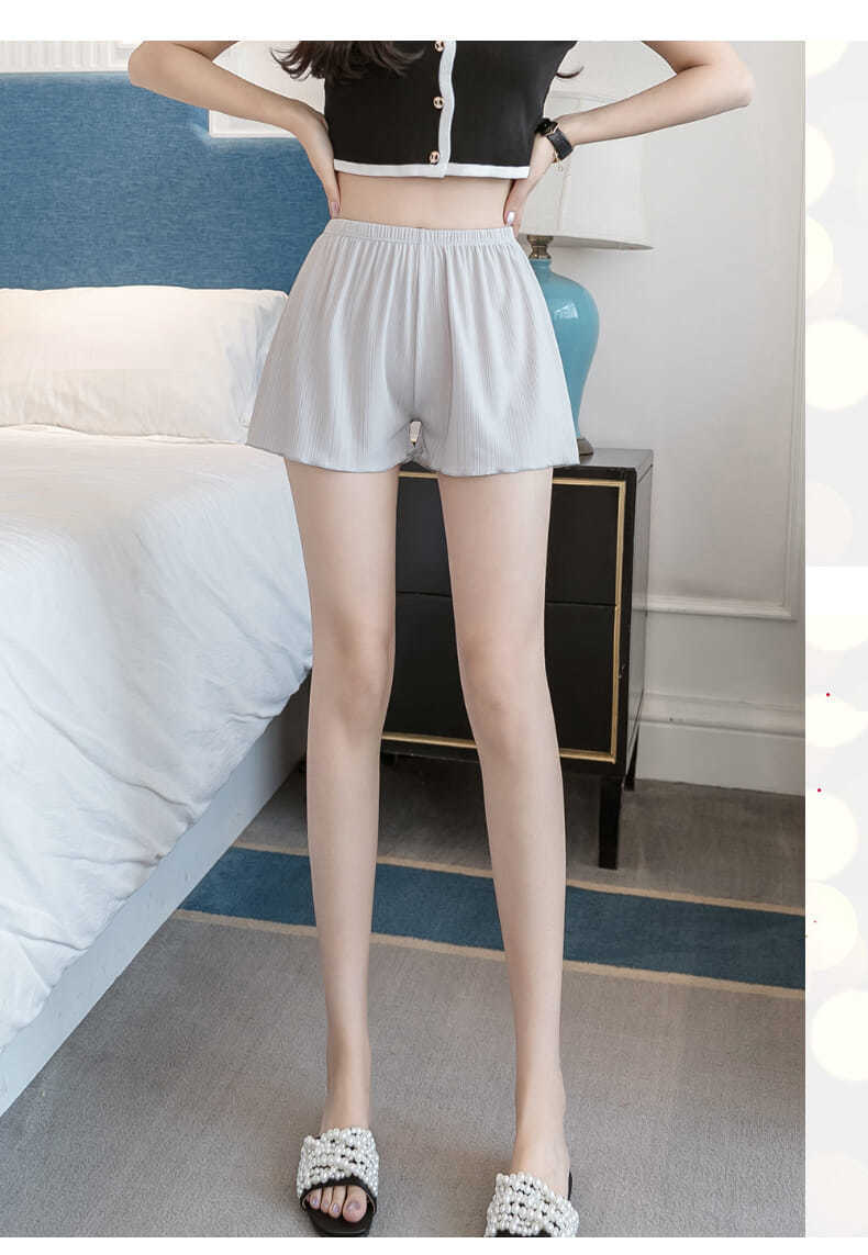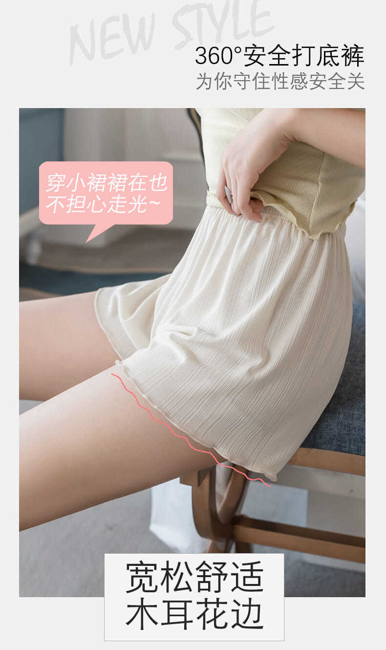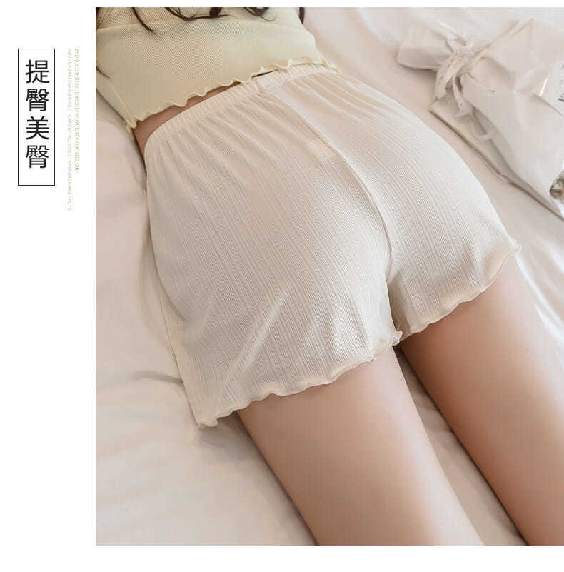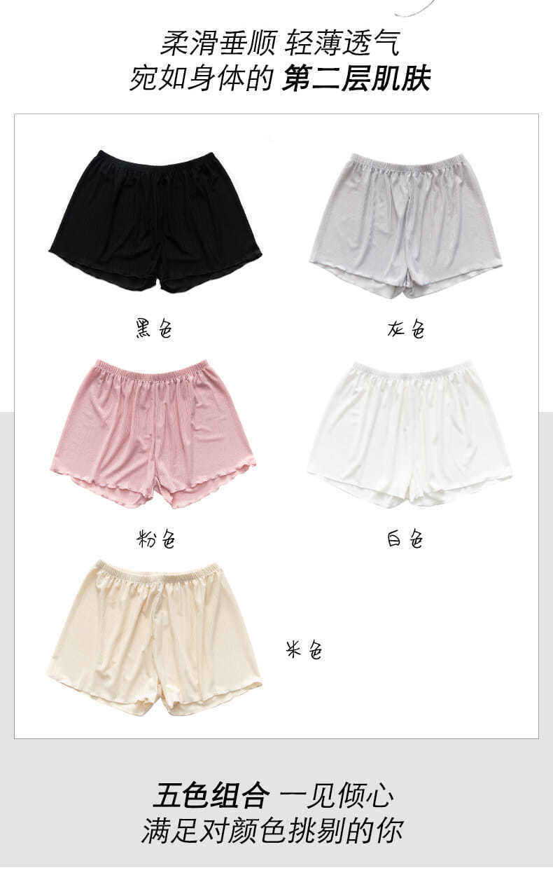 Pantalones cortos finos anti-carreras para primavera y verano, ligeros, sin enrollamiento, holgados para casa, con encaje, pantalones básicos de seguridad, pantalones de seguridad de seda de hielo para mujer
