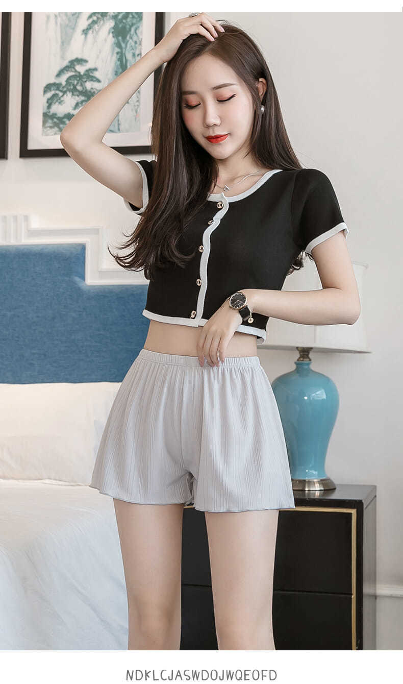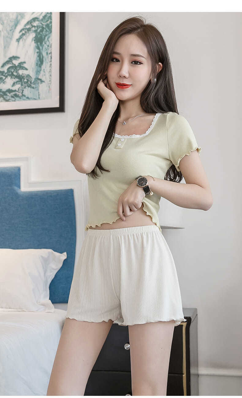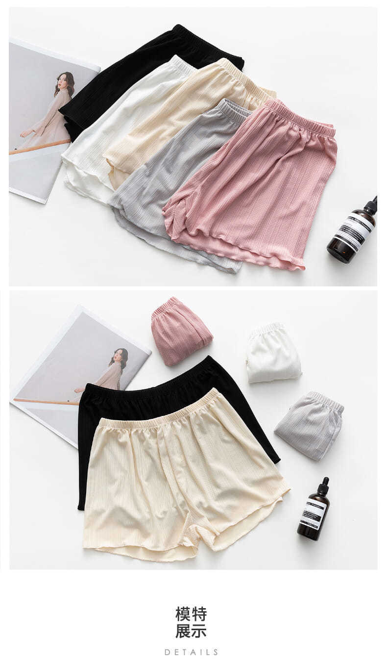 Pantalones cortos finos anti-carreras para primavera y verano, ligeros, sin enrollamiento, holgados para casa, con encaje, pantalones básicos de seguridad, pantalones de seguridad de seda de hielo para mujer