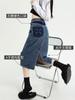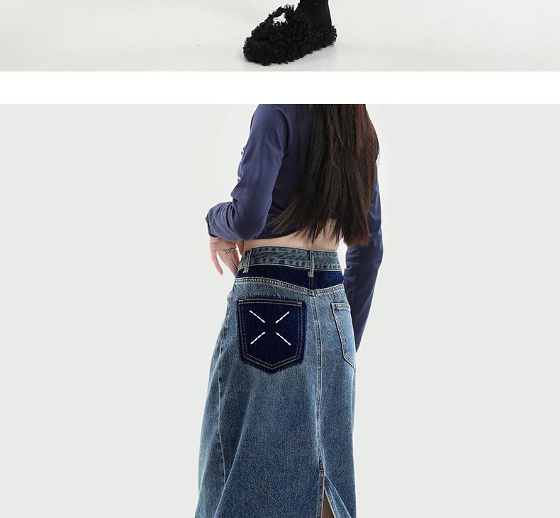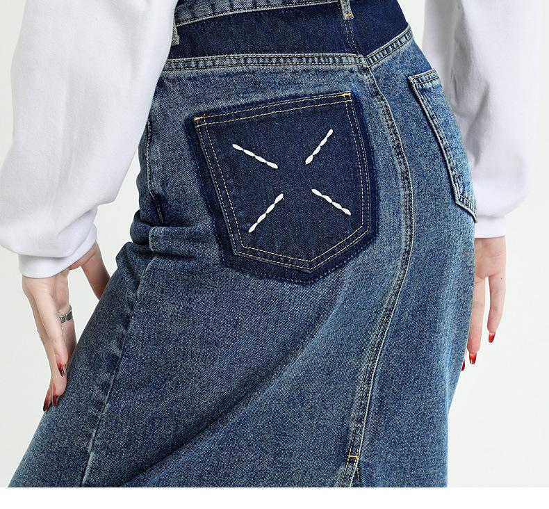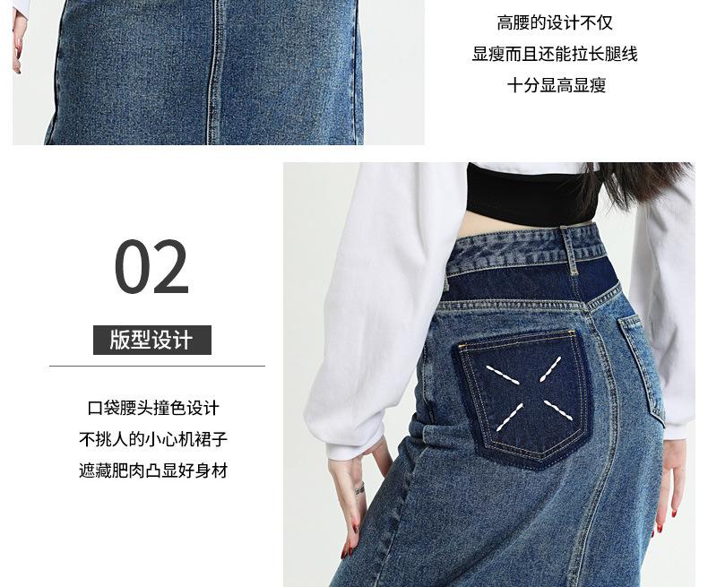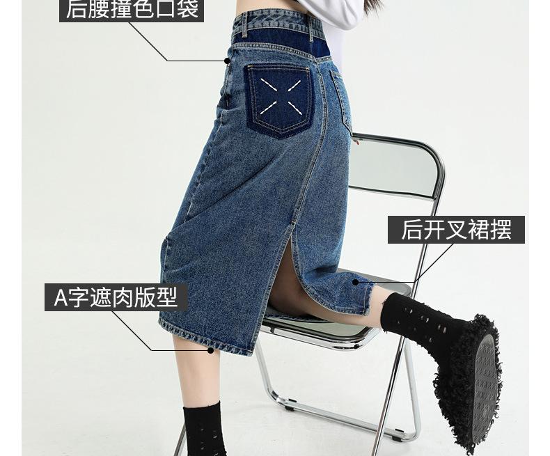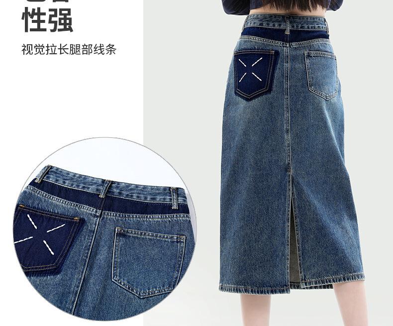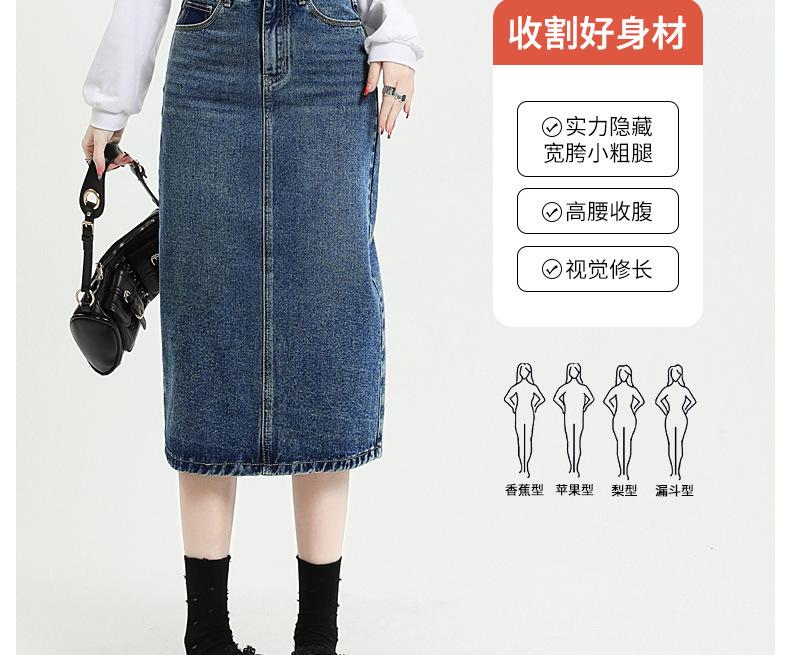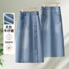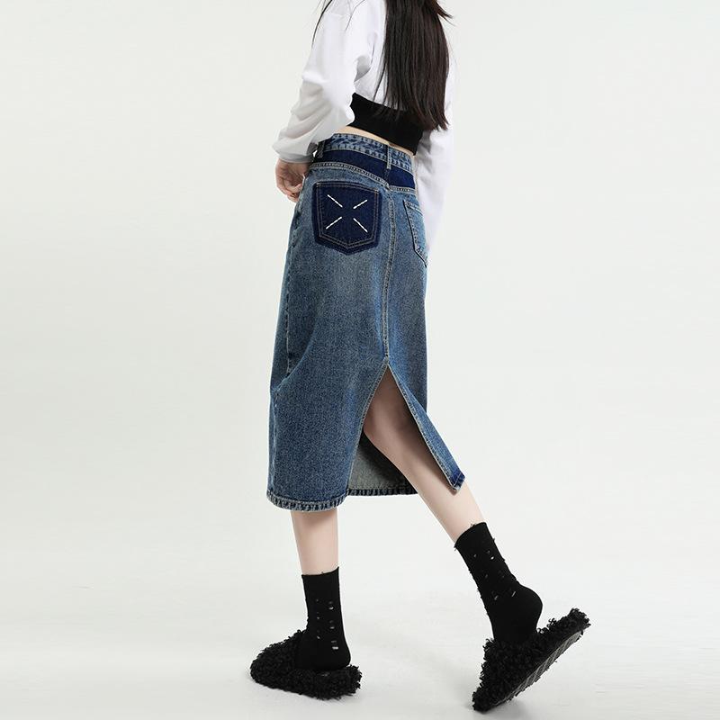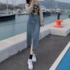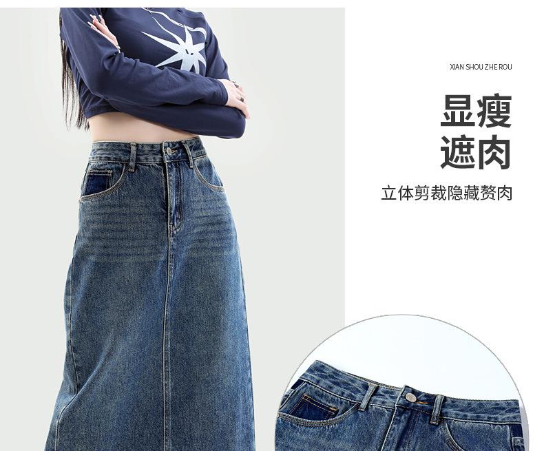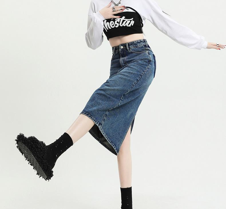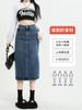 Falda de mezclilla con abertura de cintura alta para mujer 2025 Nueva Primavera y Otoño Largo medio Cubre caderas Forma A Falda de cadera pequeña