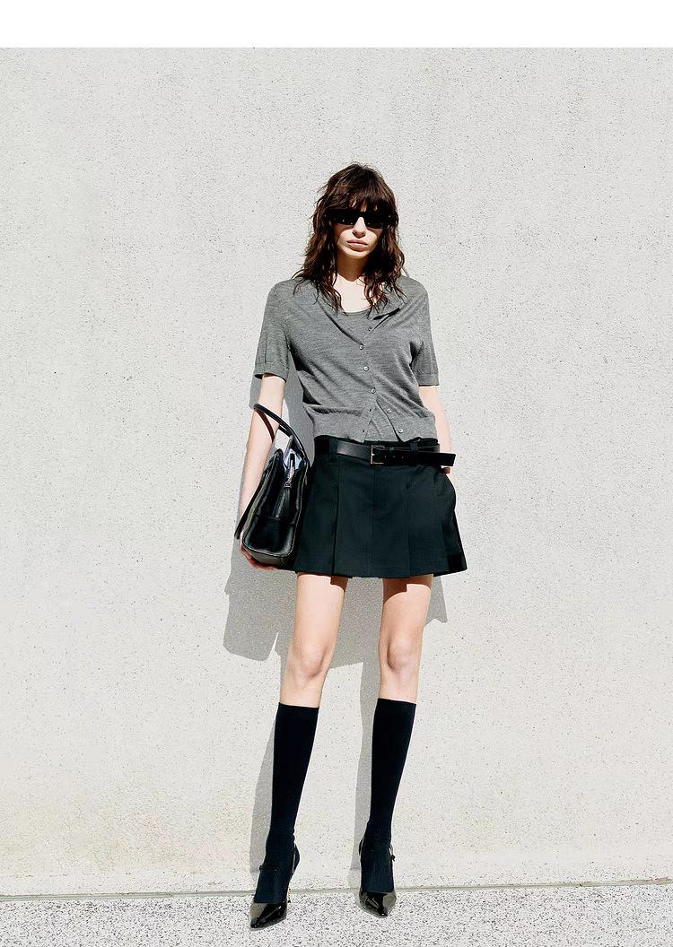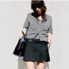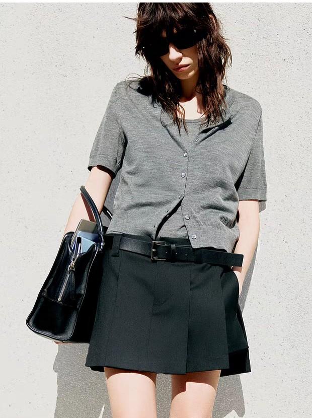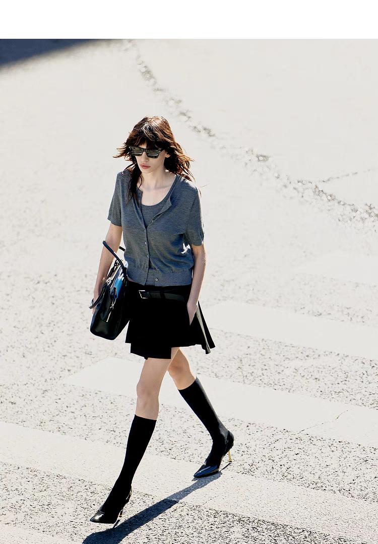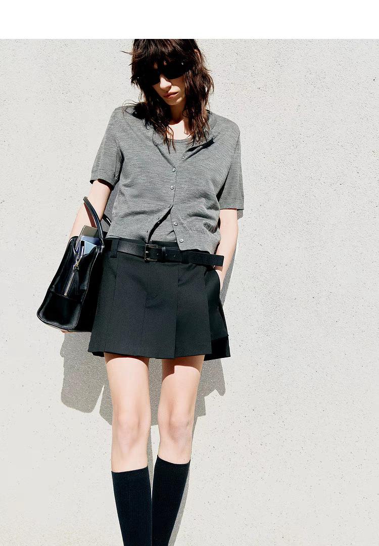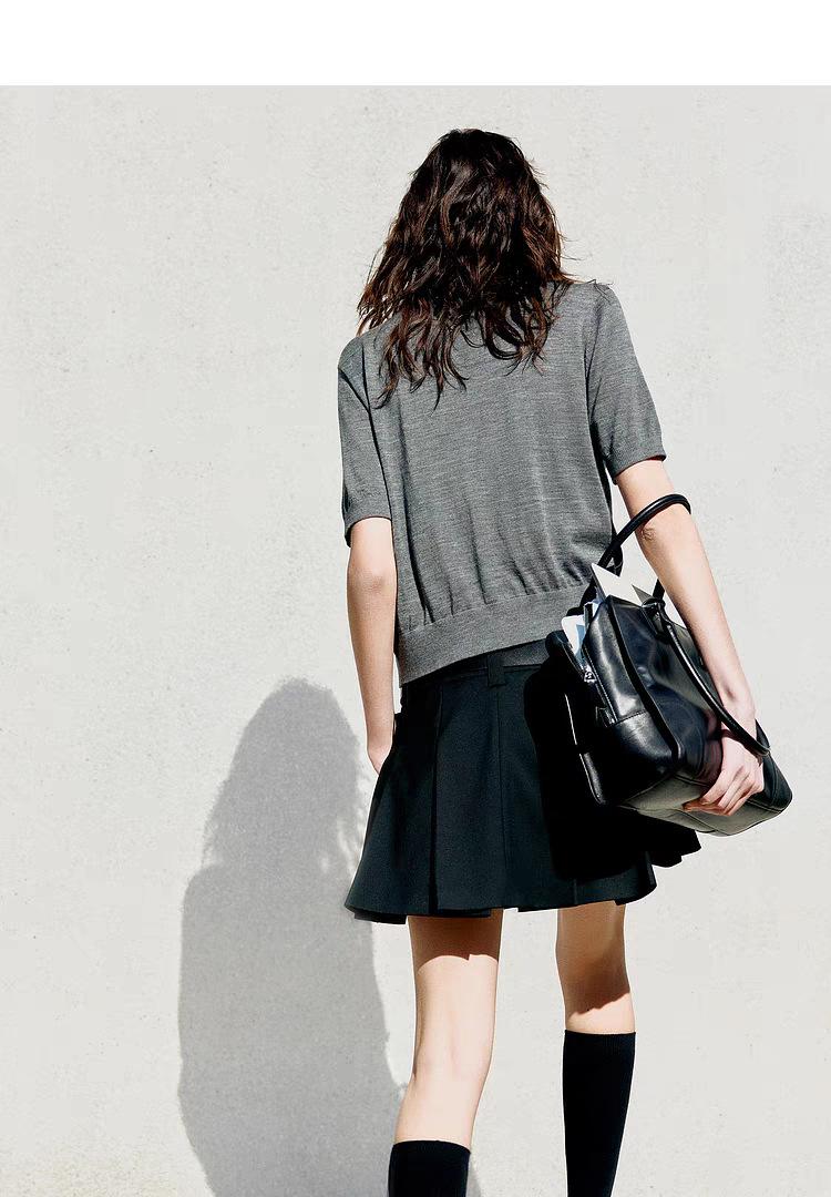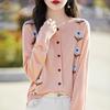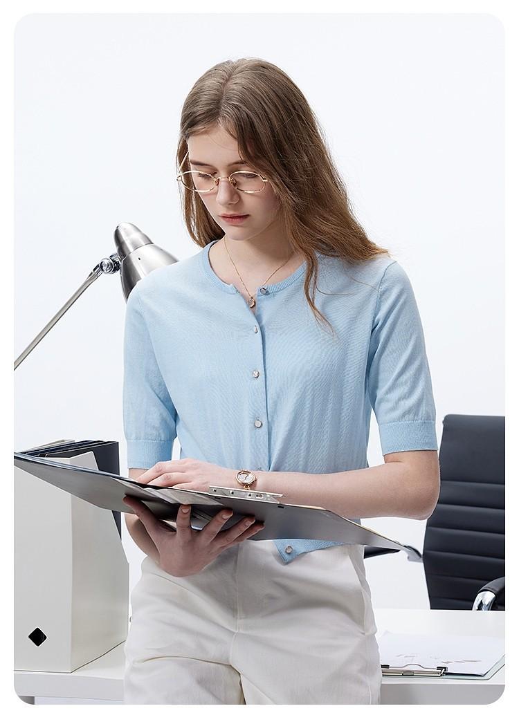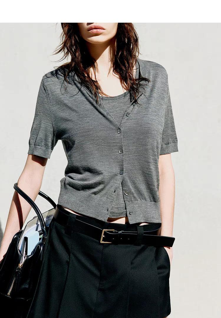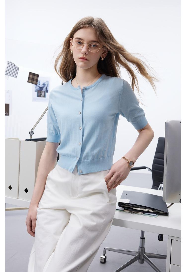 Cárdigan de Tencel de Primavera y Otoño de Media Manga con Hebilla para Mujer Tejido de Lana de Media Manga Cuello Redondo Top Abrigo Plano