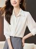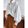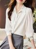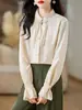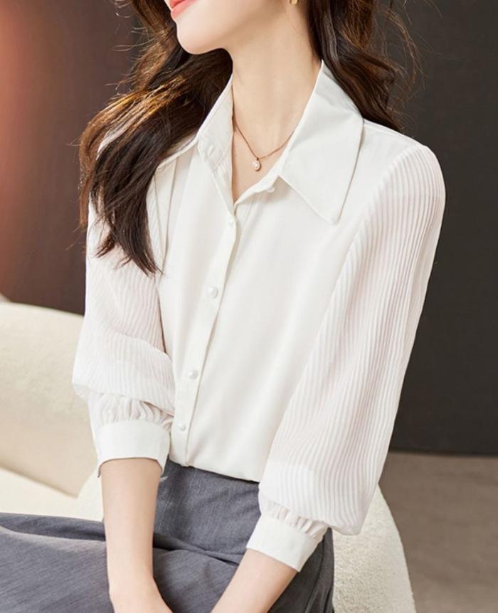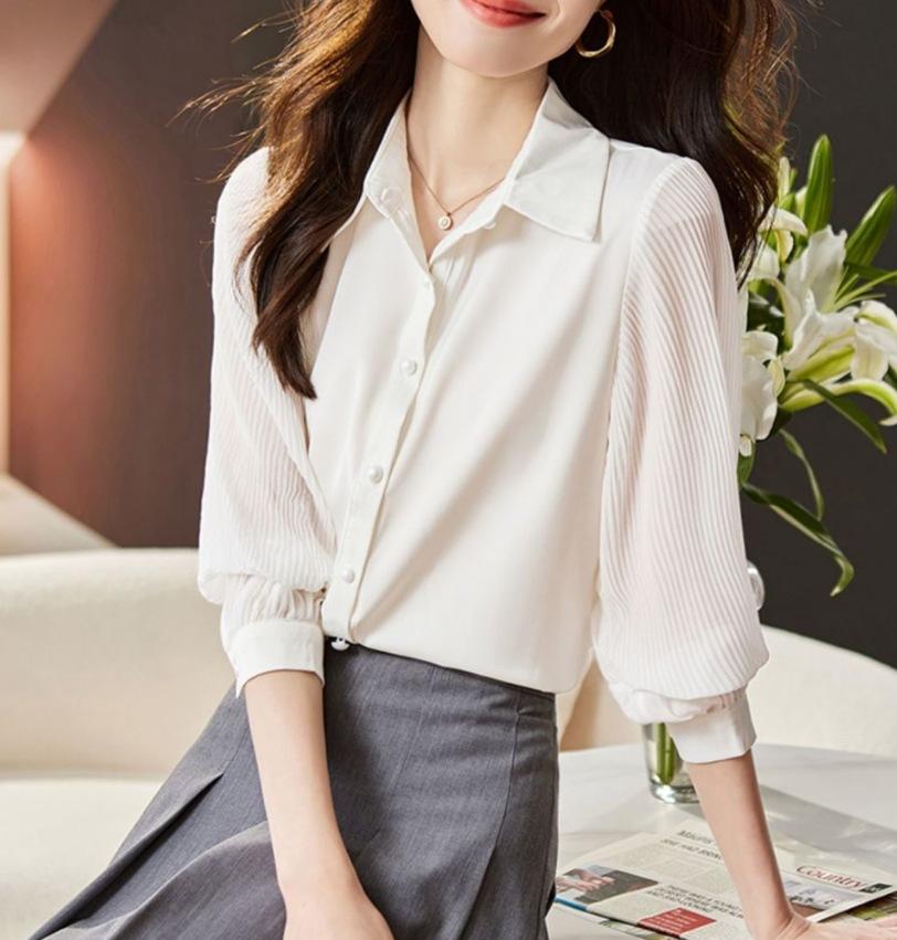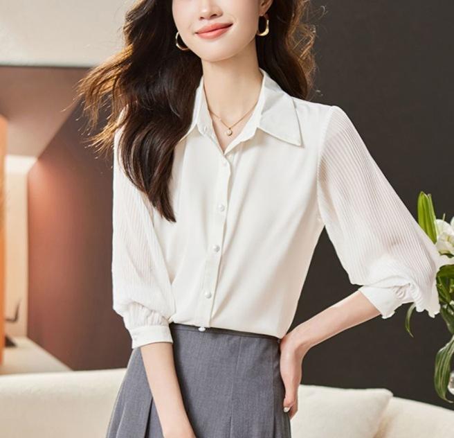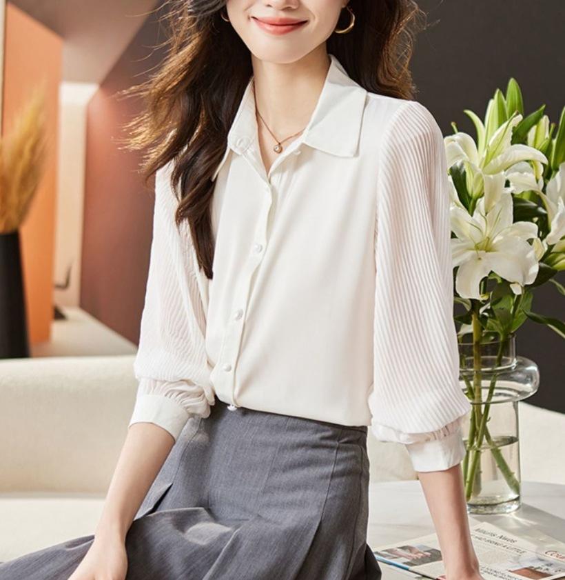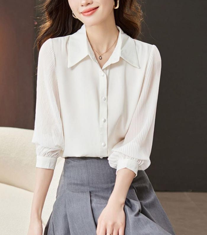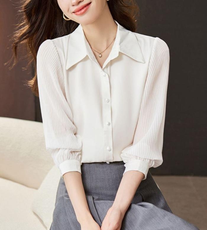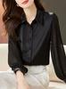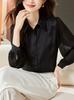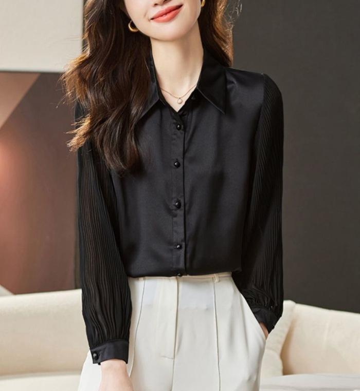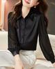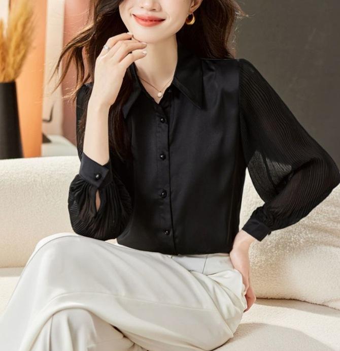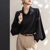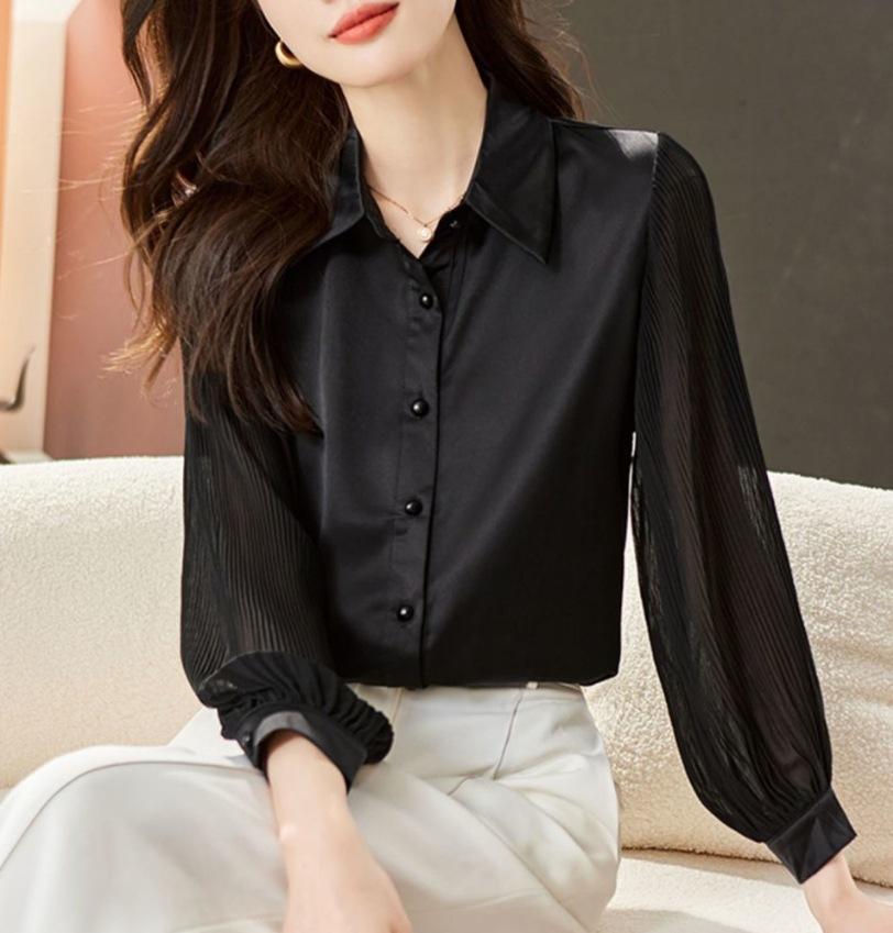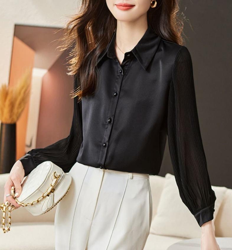 Primavera y Otoño 2025 Nuevo Diseño Sentido Manga Farol Plisada Camisa Negra Elegante Moda Commuter Profesional Top para Mujeres