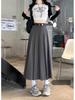 Falda de paraguas de longitud media de color liso estilo coreano para mujer, verano 2025, nueva falda plisada grande con vuelo que cubre la cadera, falda de corte A