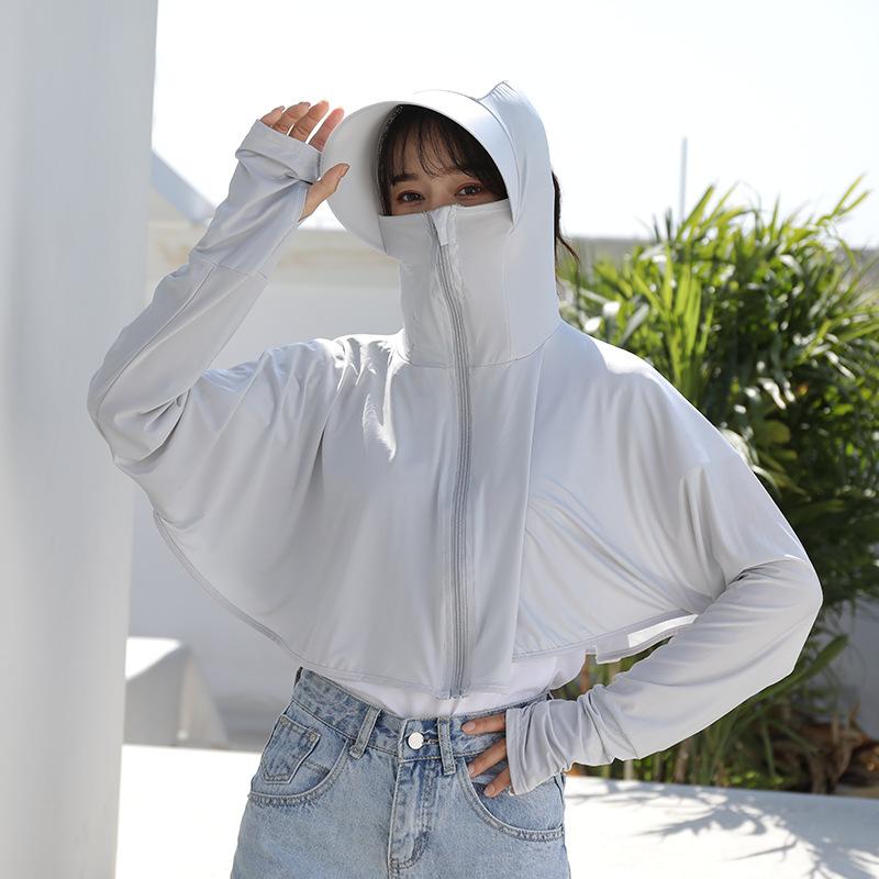 Ropa de Protección Solar de Seda de Hielo Verano para Mujer Exterior Manga Larga Ultradelgada Ropa de Protección Solar Capa Chal Ciclismo Blusa Protección Solar