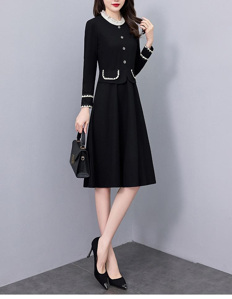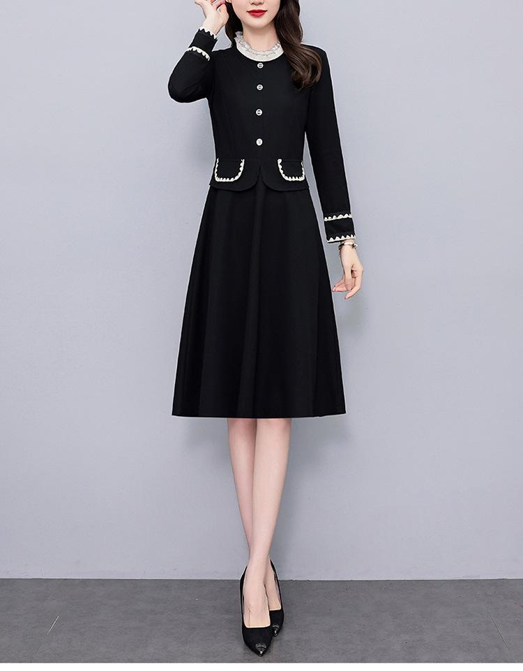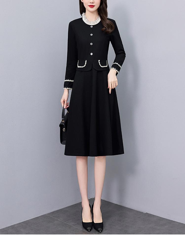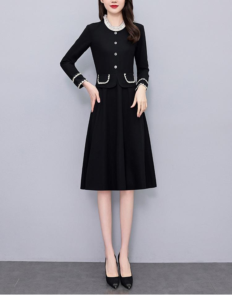 Vestido de manga larga para mujer, estilo occidental, moderno, ajustado, de longitud media y talla grande, para primavera y otoño, nuevo estilo, ropa ancha para esposa y madre.
