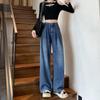 Jeans Americanos Retro de Pierna Ancha para Mujer 2025 Verano Petite Holgados de Cintura Alta Adelgazantes Drapeados Rectos hasta el Piso