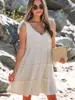 2025 Primavera Nuevo Estilo Vacacional Europeo y Americano Vestido de Playa sin Tirantes Ajustado Vestido Corto con Volantes Bordado Mujeres