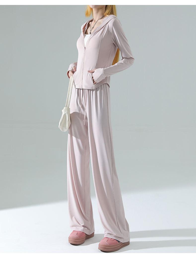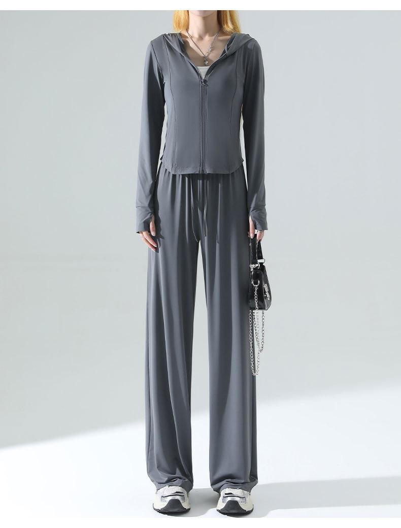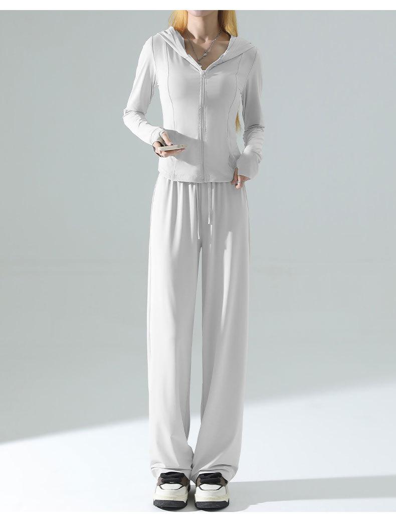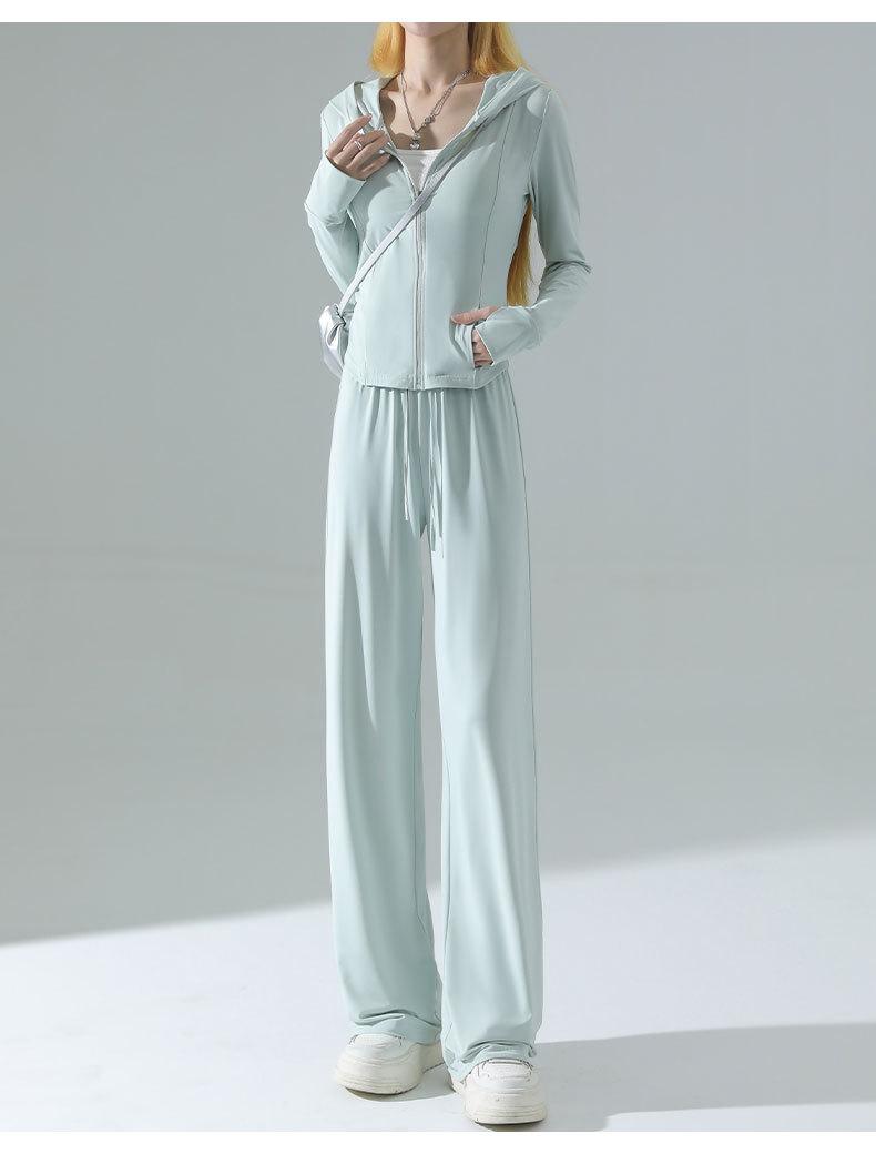 Ropa de Protección Solar de Seda de Hielo de Corte Slim para Mujer, Cintura de Secado Rápido, Pantalones Deportivos de Pierna Ancha de Verano, Traje Adelgazante de Yoga 2025 Nuevo