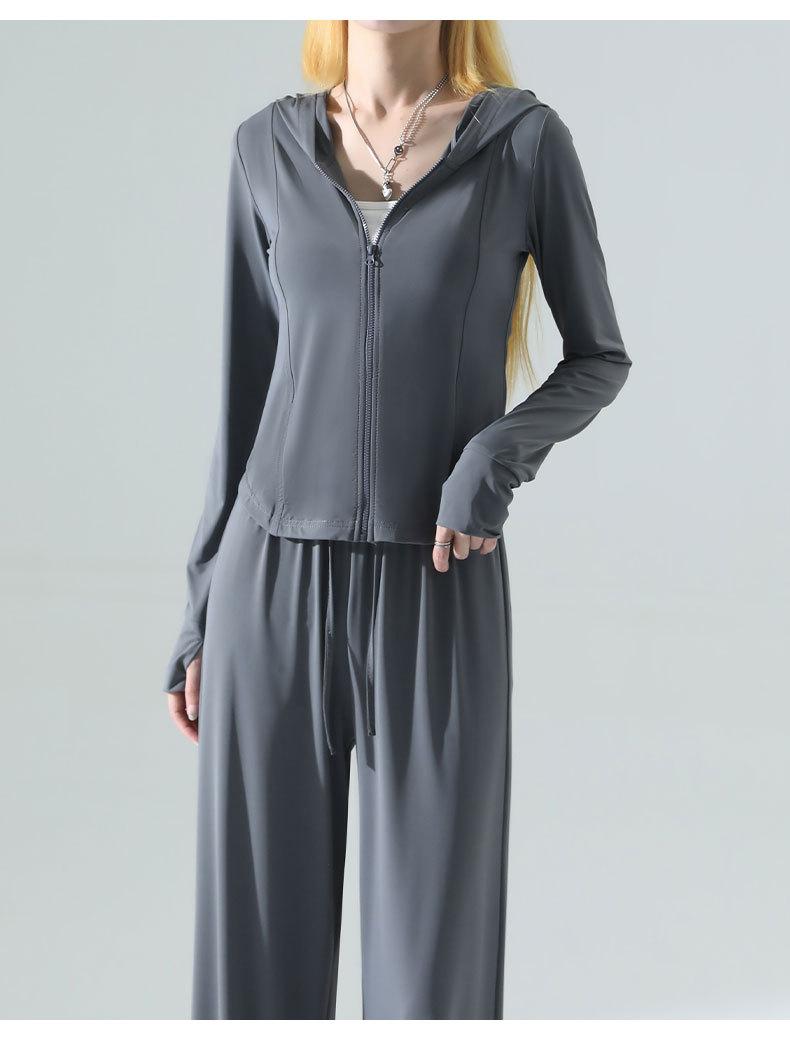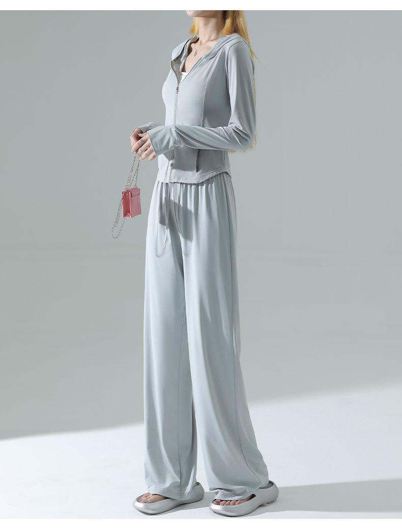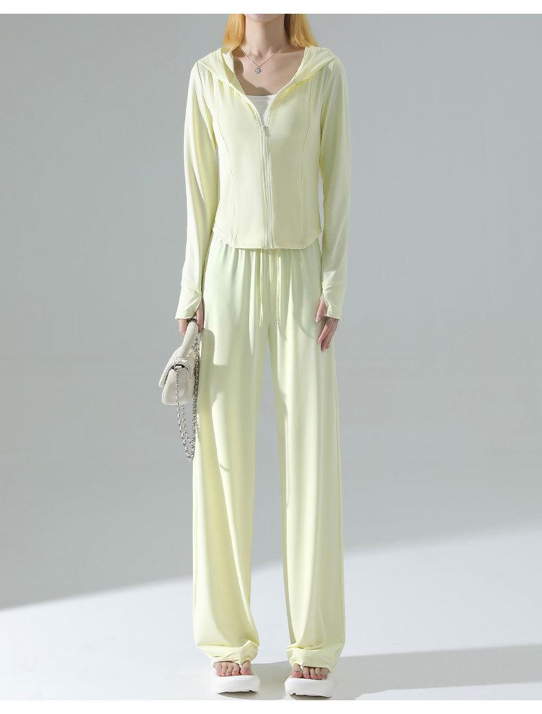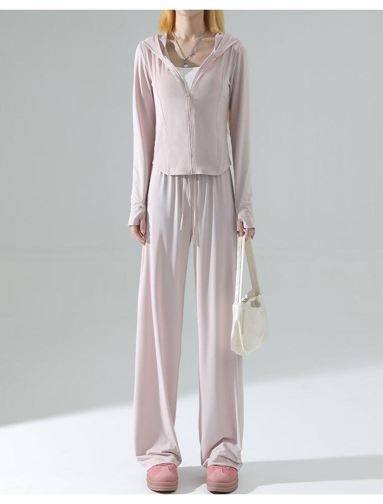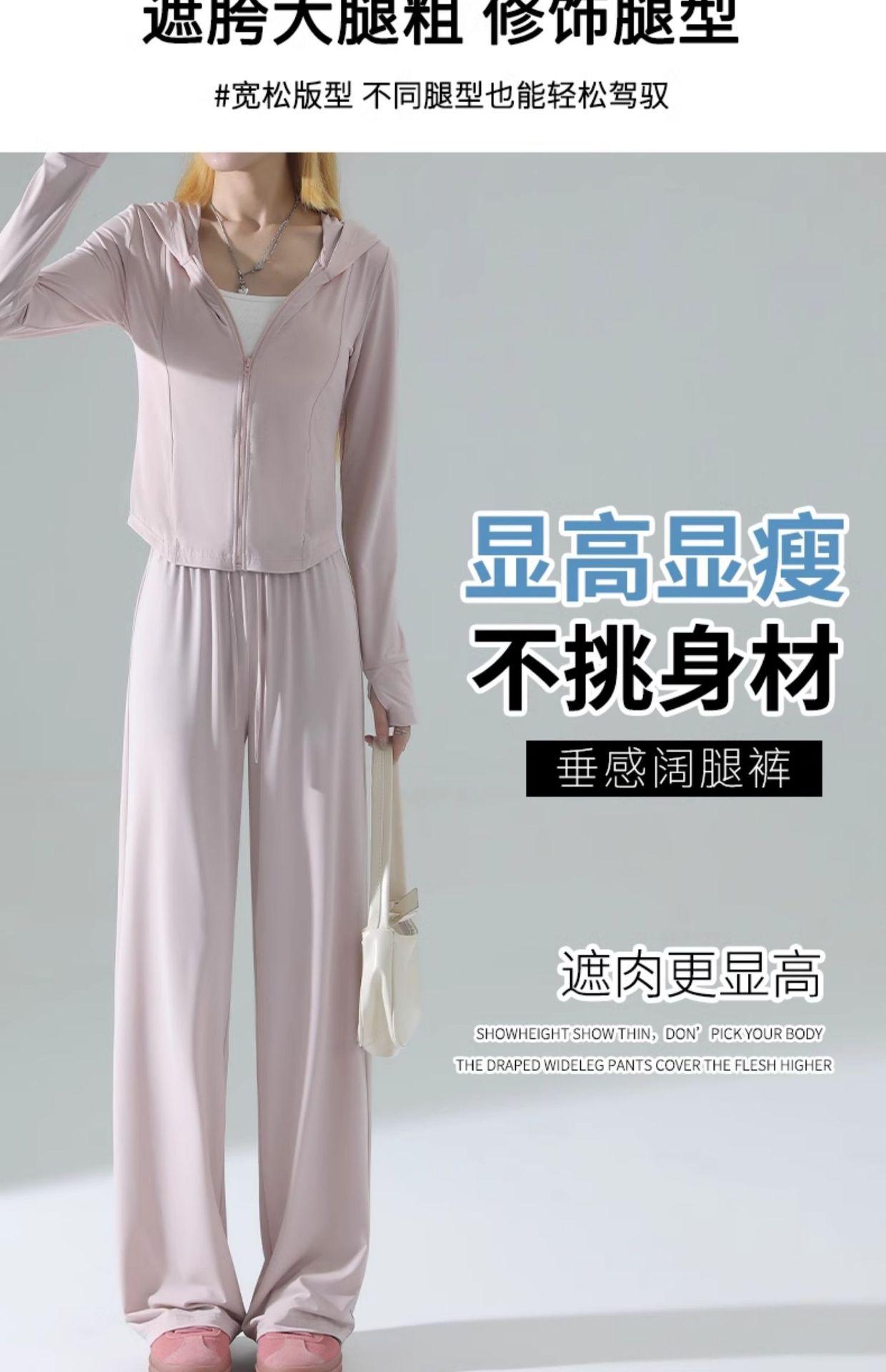 Ropa de Protección Solar de Seda de Hielo de Corte Slim para Mujer, Cintura de Secado Rápido, Pantalones Deportivos de Pierna Ancha de Verano, Traje Adelgazante de Yoga 2025 Nuevo