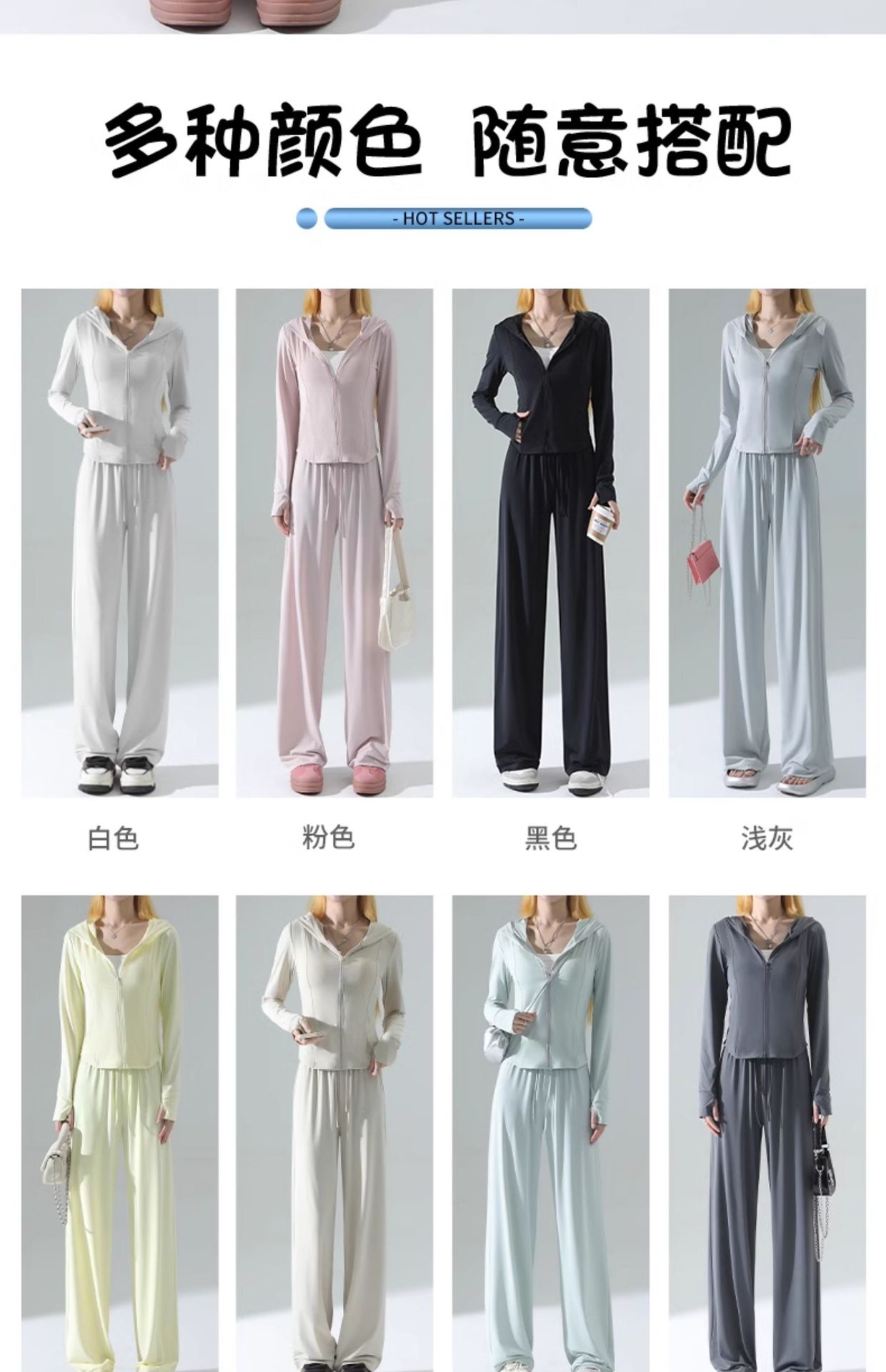 Pink [sun protection clothing], Pink [regular sun protection pants], Light gray [sun protection clothing], Lig...