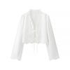 Camisa de manga larga estilo occidental con cuello hongo y costuras de encaje blanco de Simon Reiner para mujer, otoño