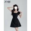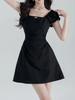 Vestido negro estilo francés para mujer, verano 2024, nuevo, color sólido, escote en V, estilo Hepburn simple, elegante, retro, corte A.