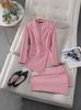Chaqueta de traje rosa de manga larga con cuello pequeño, pantalones para mujer, traje informal profesional de dos piezas, alta moda, elegante, para desplazamientos diarios.