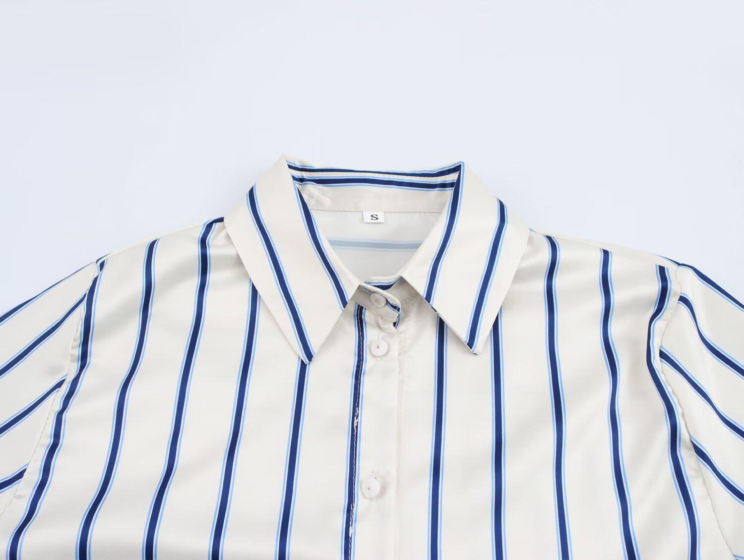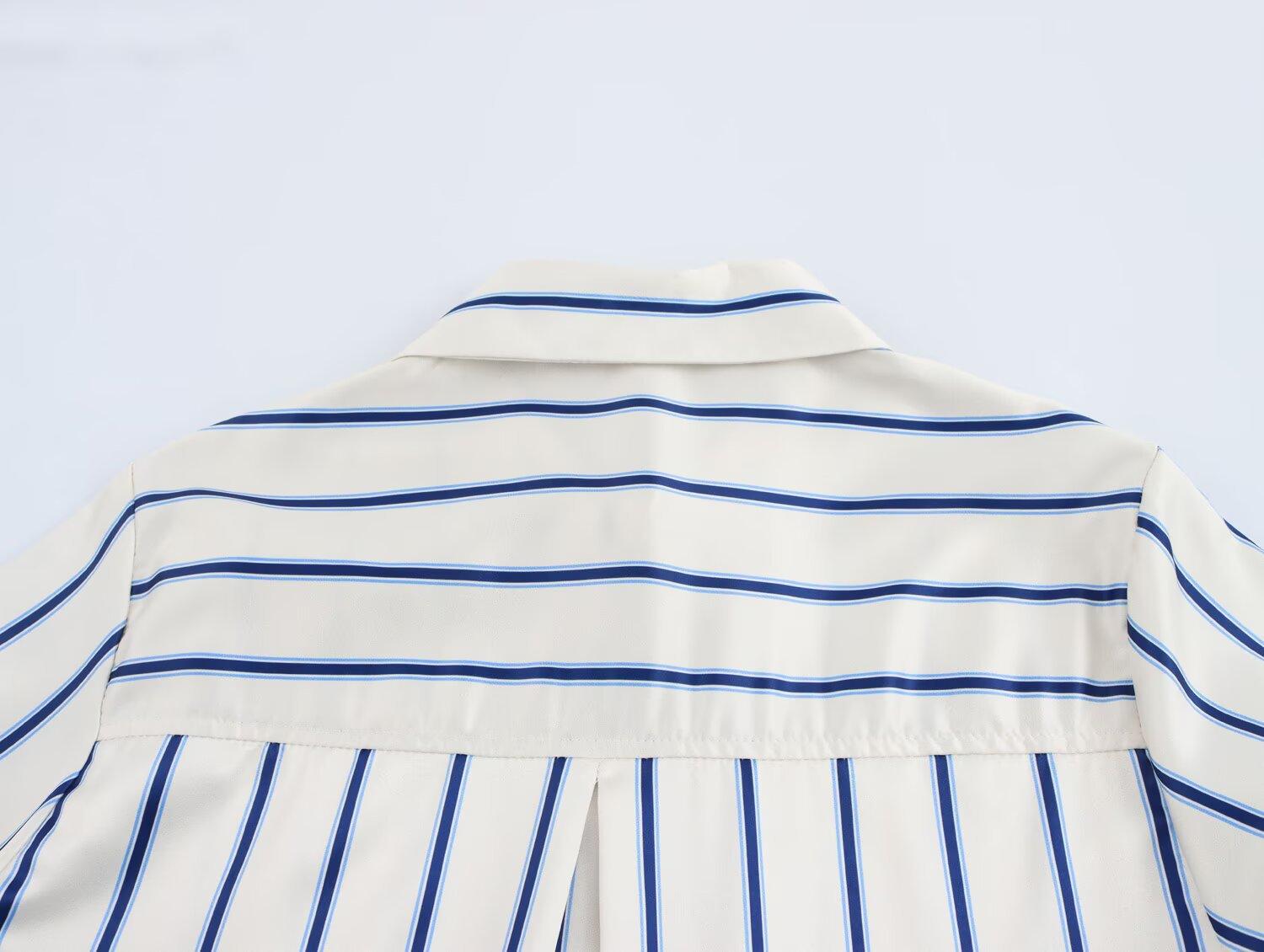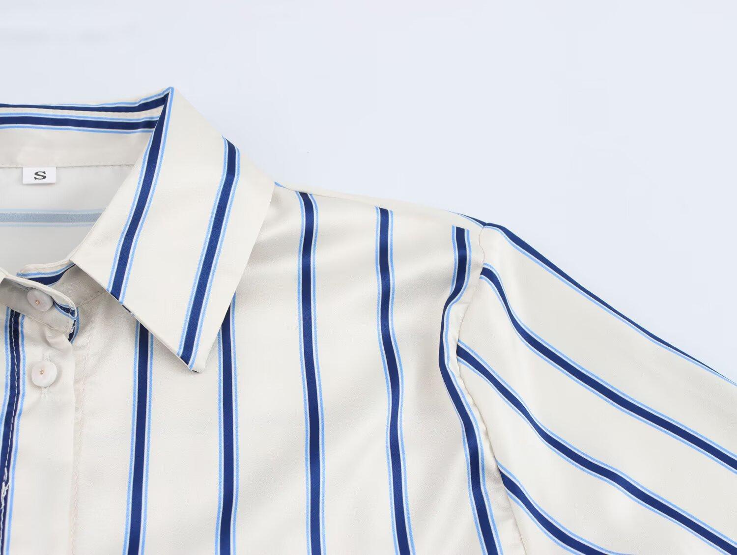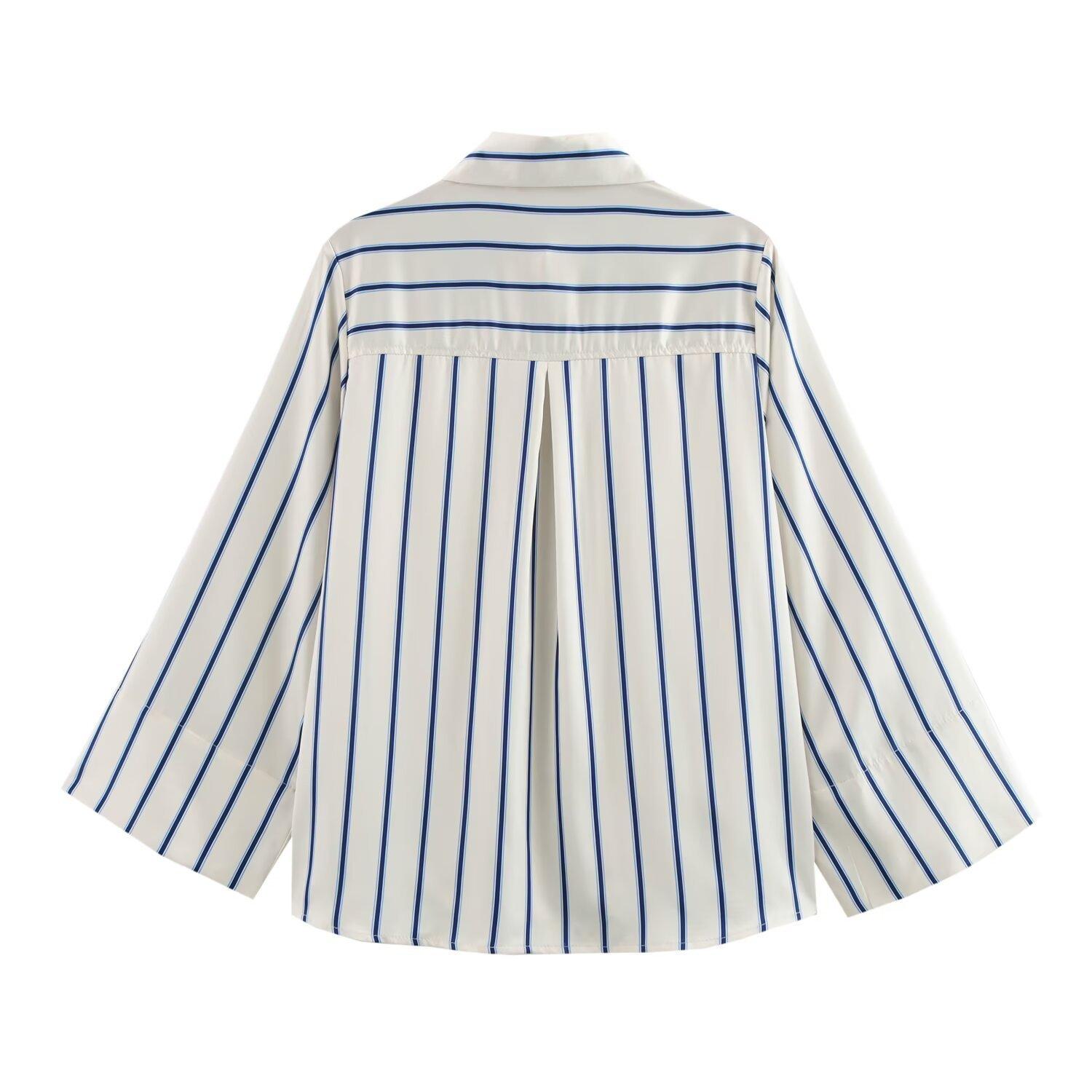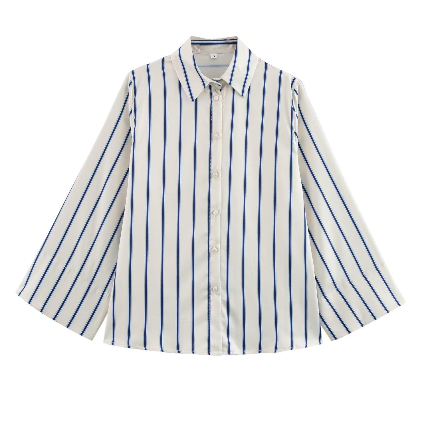 Camisa casual de rayas de manga ancha para mujer, moda callejera europea, americana, europea y americana transfronteriza, primavera 2025 21 82061