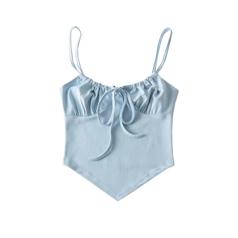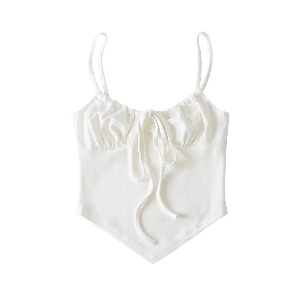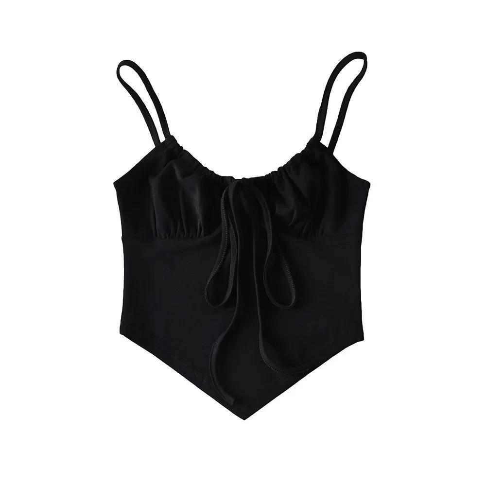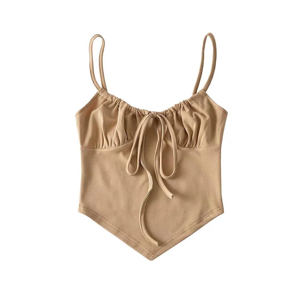 Top corto con cordones y tirantes finos para mujer, estilo sexy de chica sexy de verano, con pliegues en el pecho y corte ajustado, a la moda.