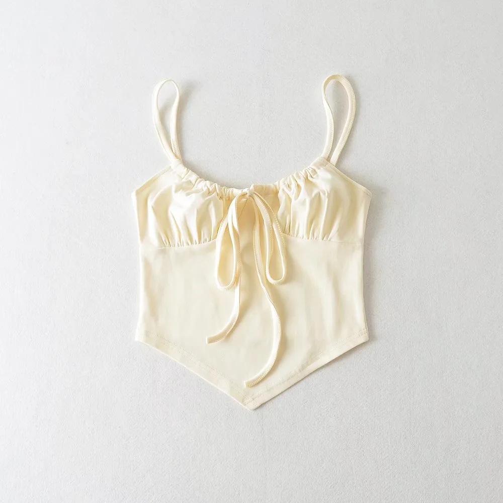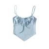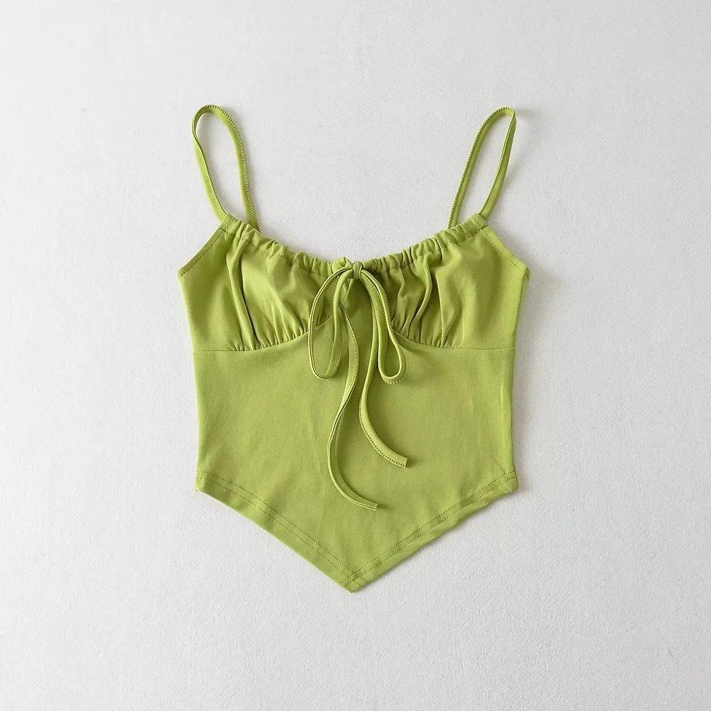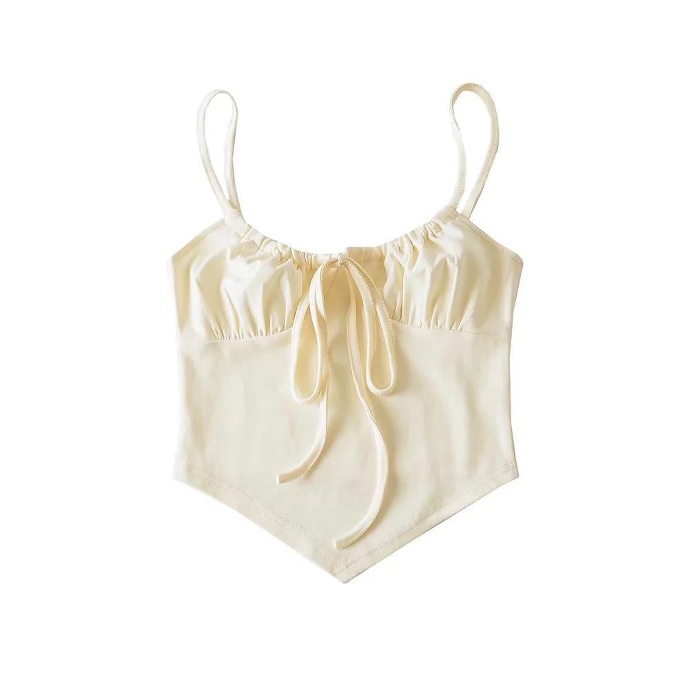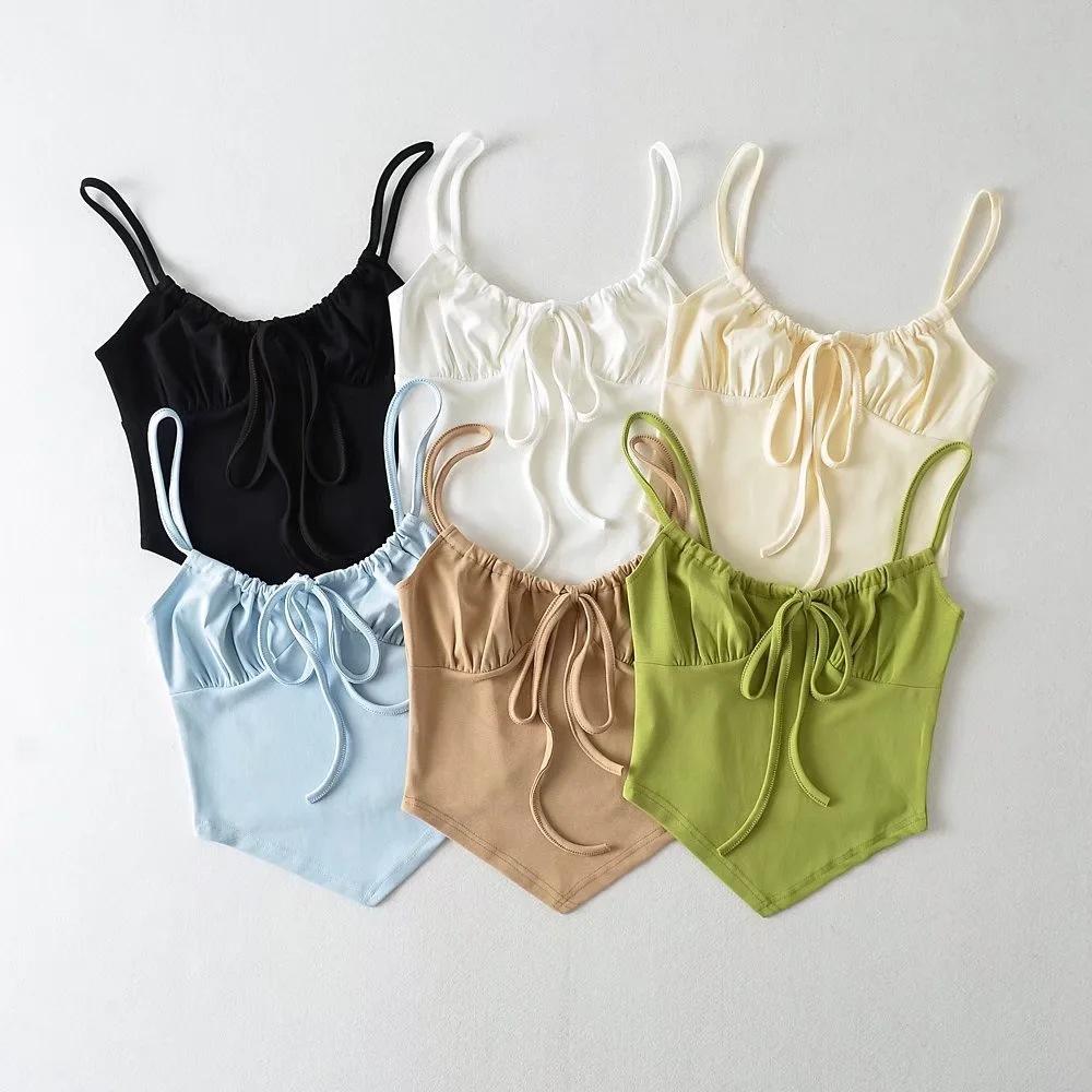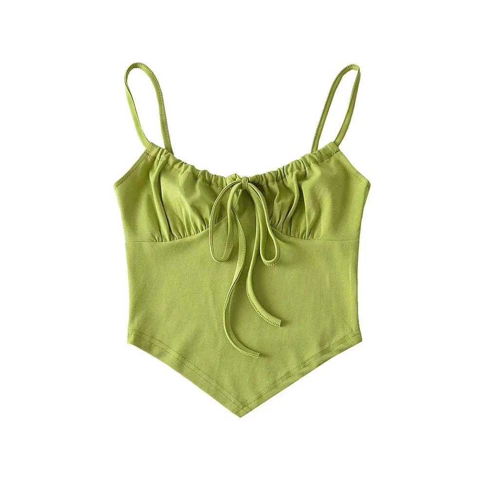 Top corto con cordones y tirantes finos para mujer, estilo sexy de chica sexy de verano, con pliegues en el pecho y corte ajustado, a la moda.