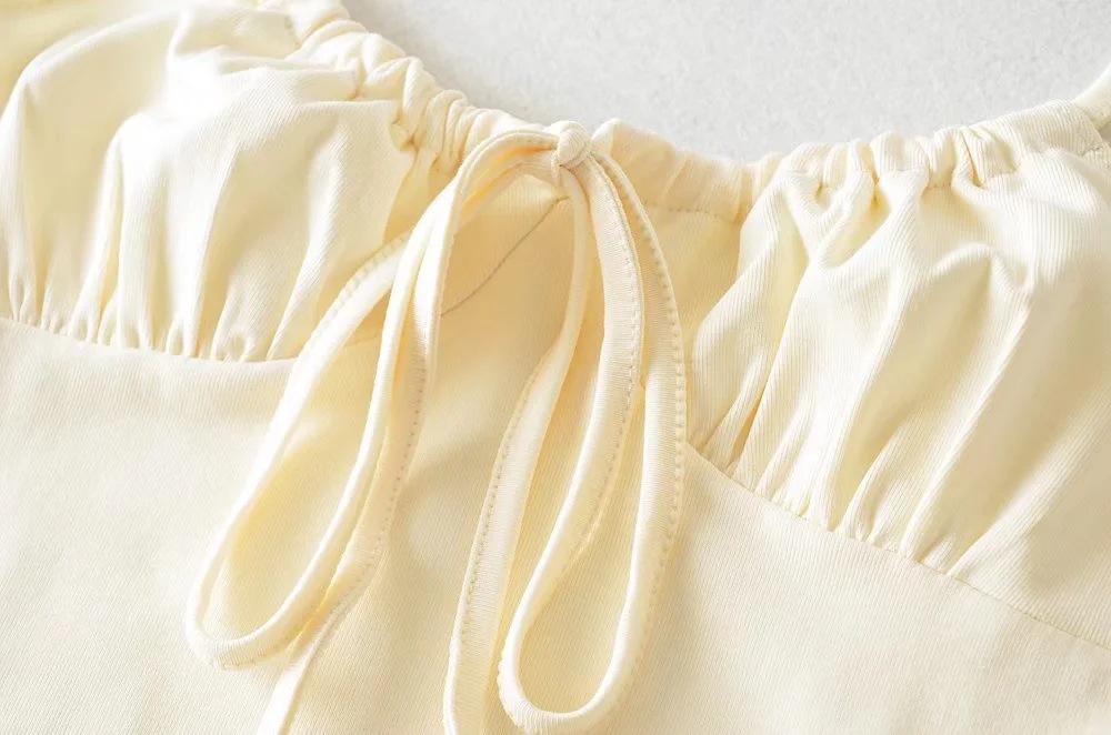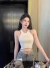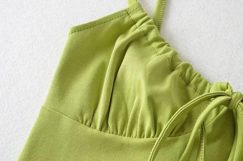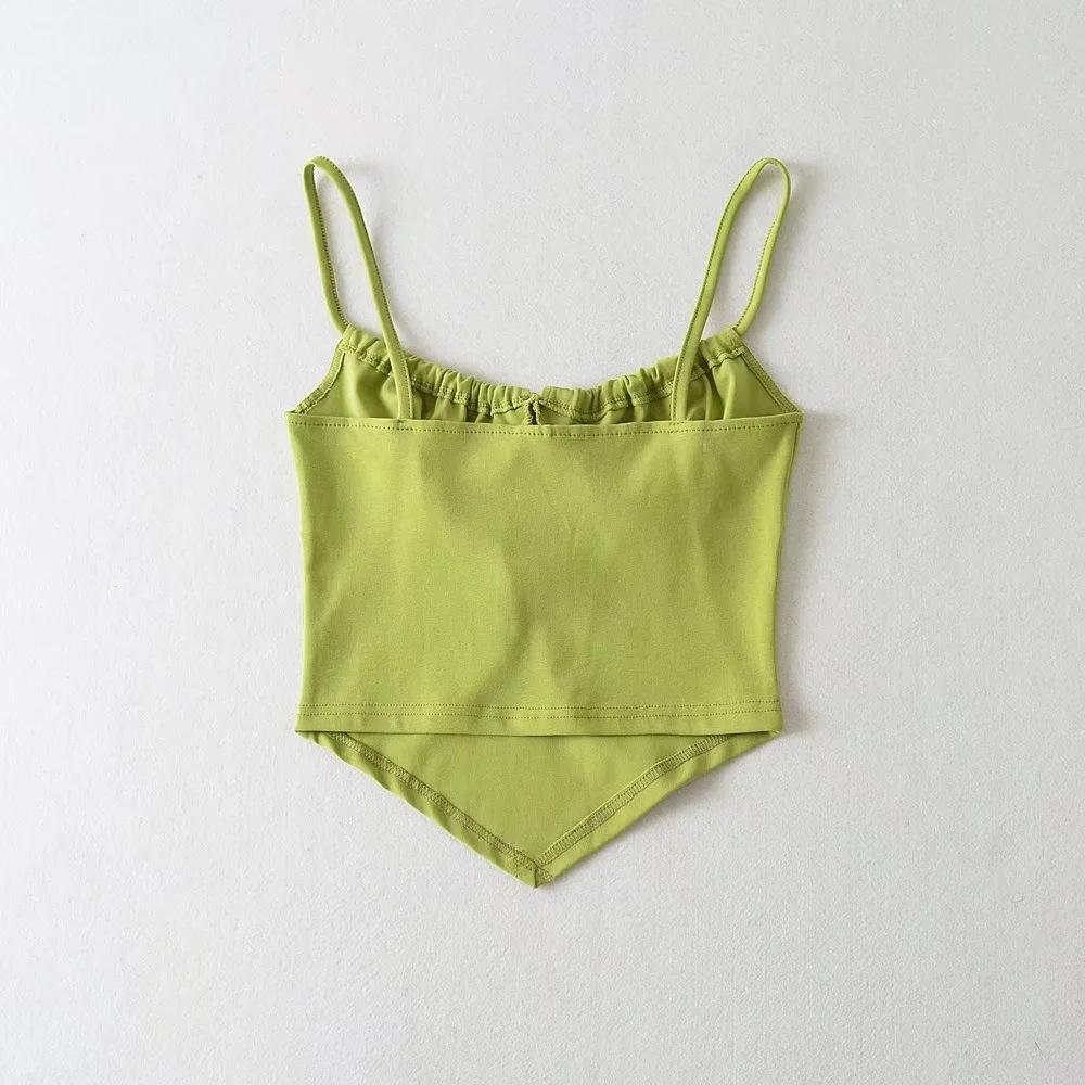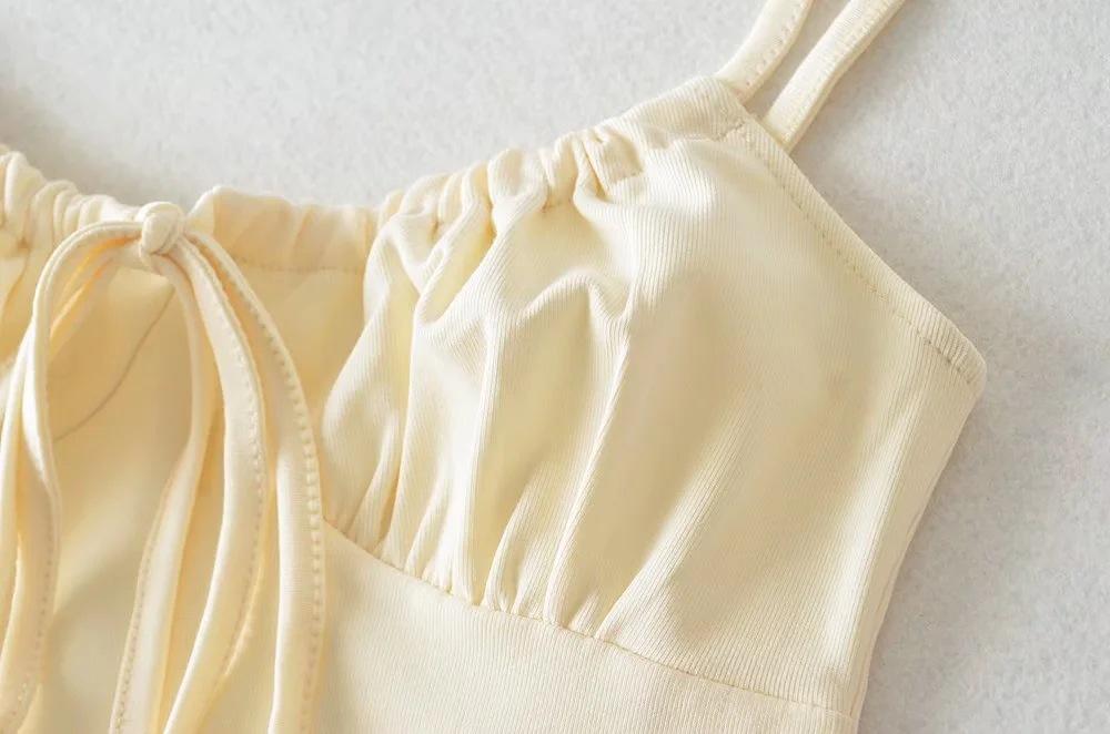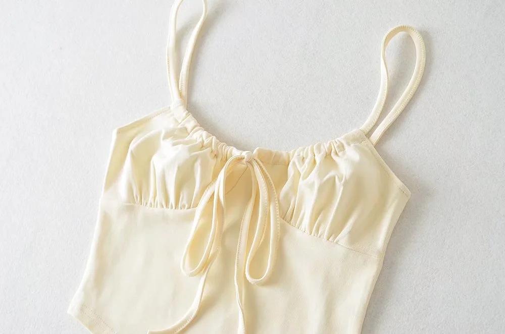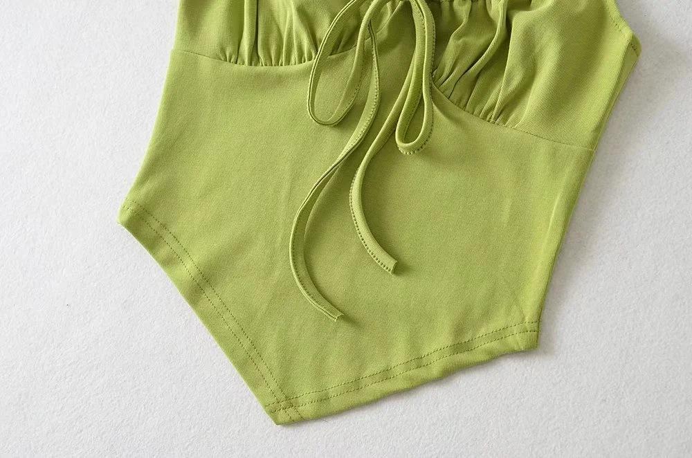 Top corto con cordones y tirantes finos para mujer, estilo sexy de chica sexy de verano, con pliegues en el pecho y corte ajustado, a la moda.