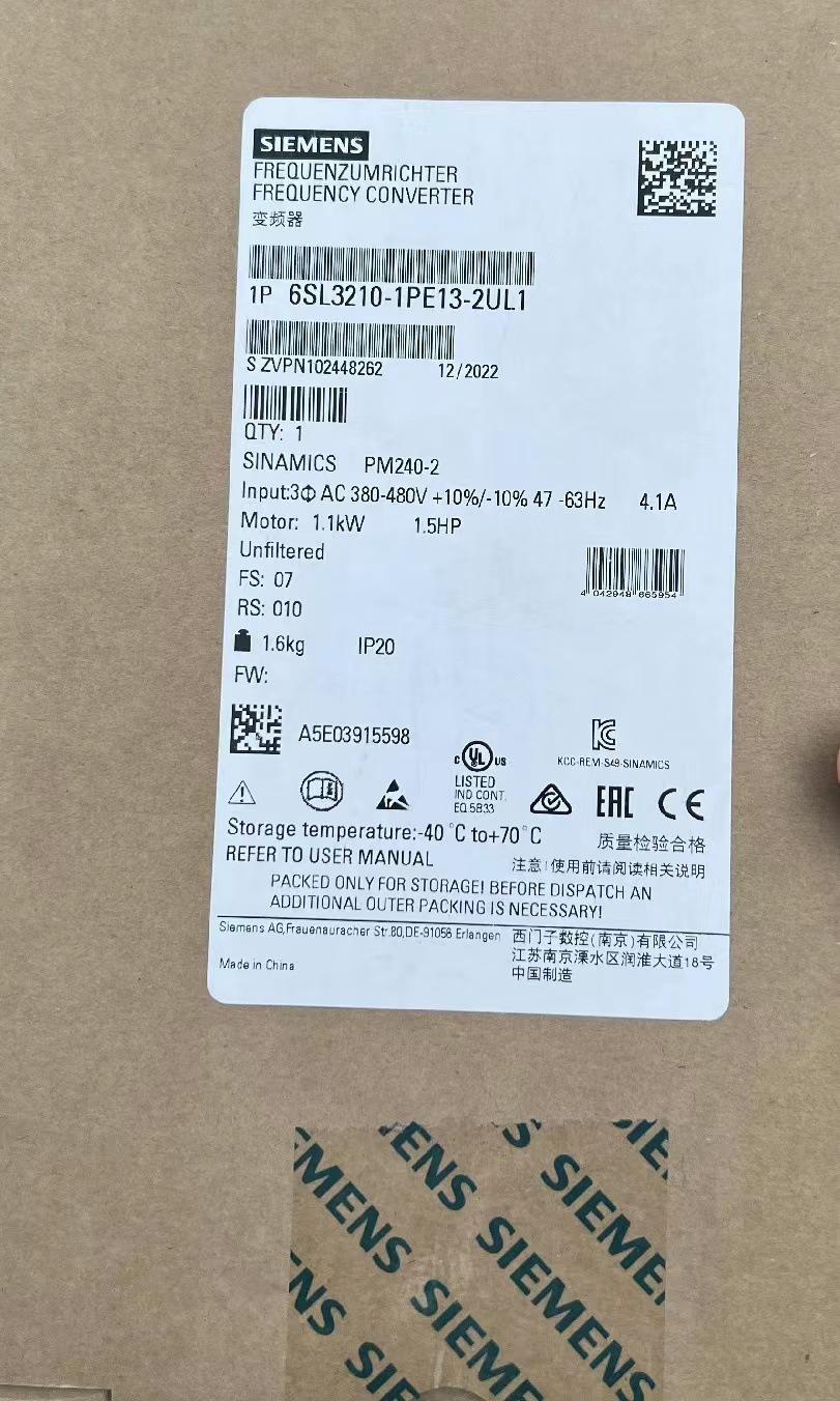 SINAMICS G120X Potencia nominal: 4kW 60S al 110%, 240s al 100% Sin filtro 380-480V+10/-20% CA trifásica 47-63Hz Temperatura ambiente -20 a +45°C Tamaño: FSB Tipo de protección IP20 / UL Abierto pintura 3C2 Sin panel de operador Sin expansión de E/S Integración de bus de campo: MODBUS RTU, BACnet MS/TP, USS,