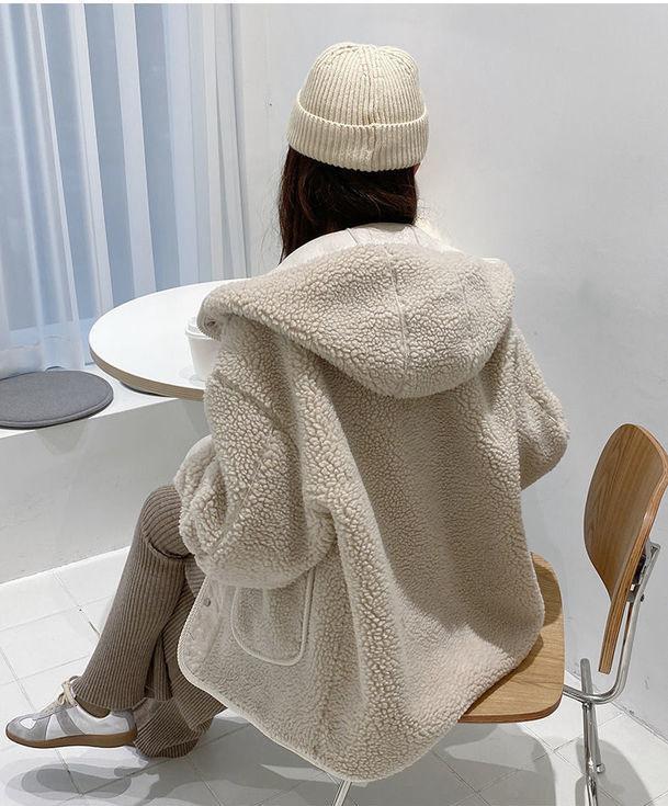 Abrigo de lana de cordero para mujer, novedad de invierno de 2023, estilo coreano, holgado, estilo coreano, con forro interior, elegante y grueso.