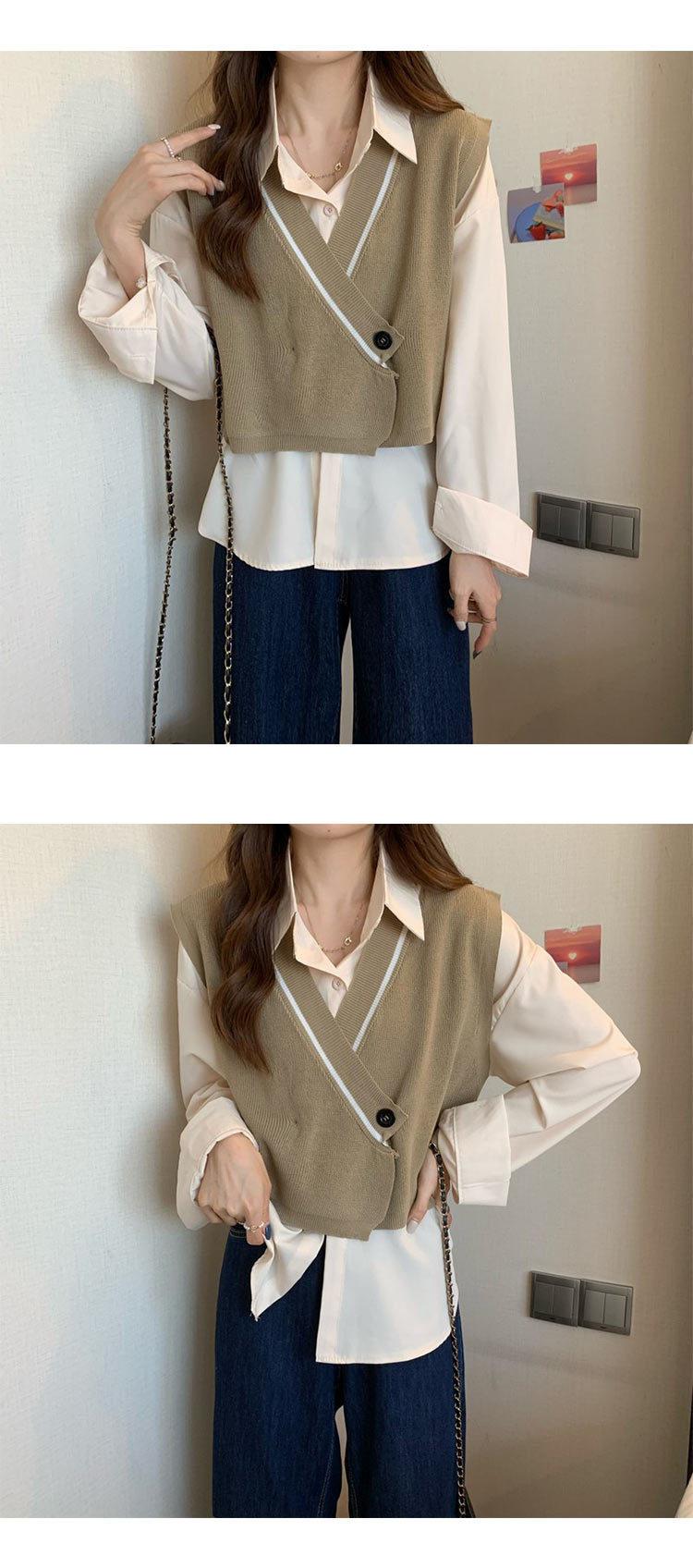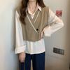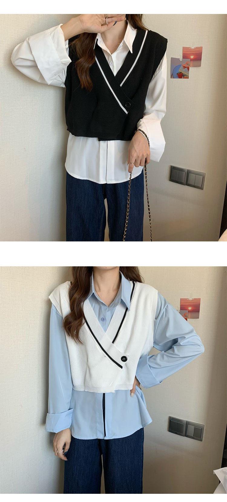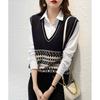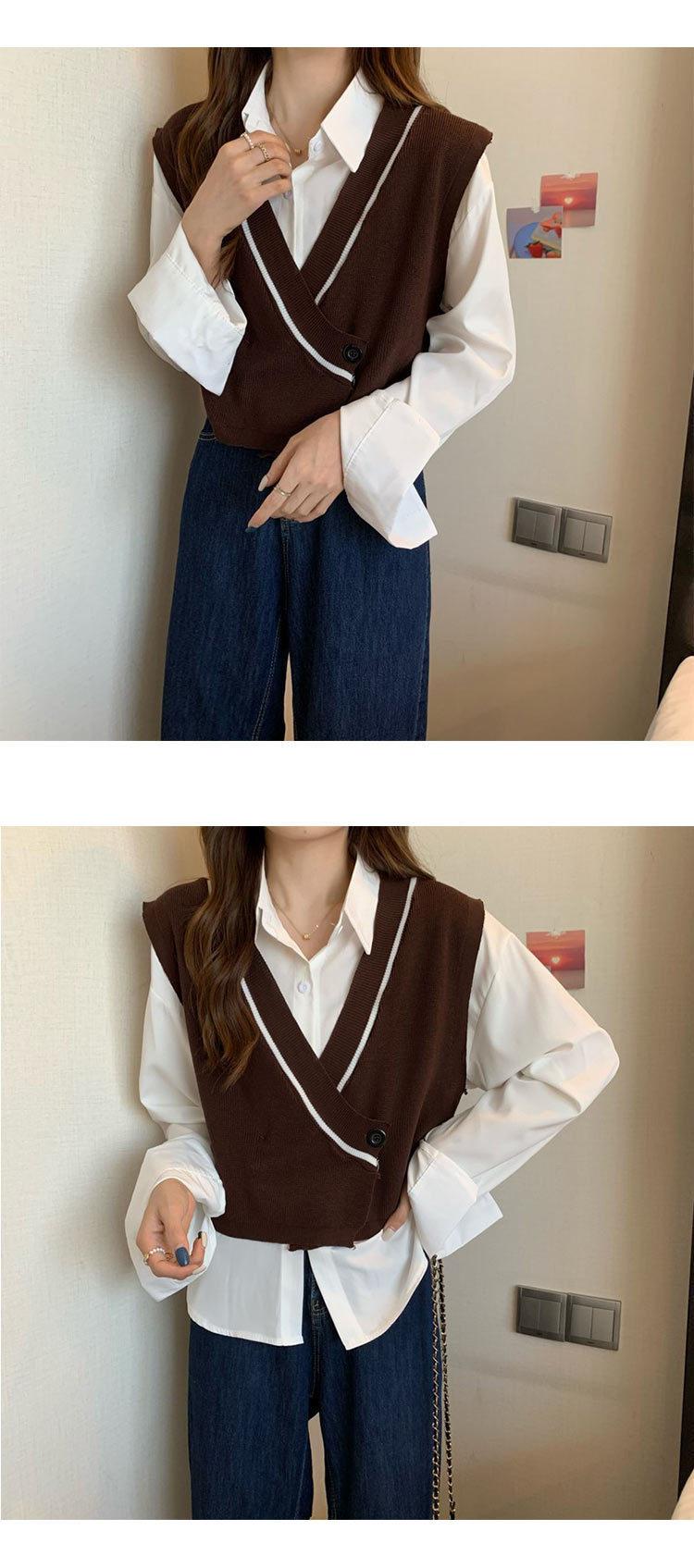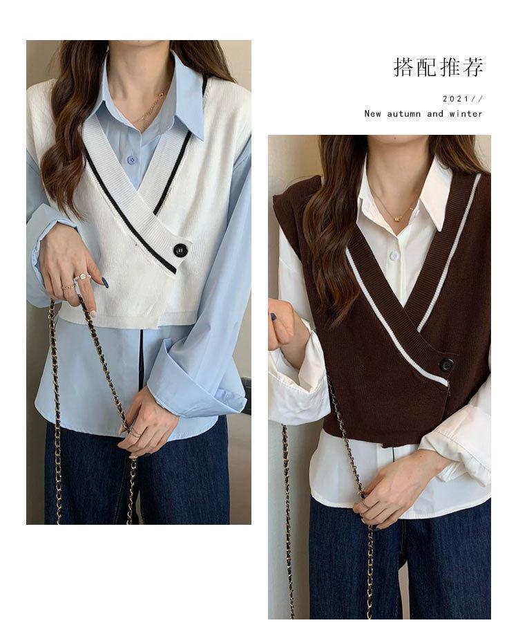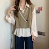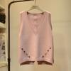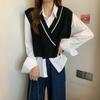 Cárdigan de punto sin mangas con cuello en V para otoño e invierno, chaleco a juego de colores, top corto de un solo botón coreano nuevo y sencillo para mujer