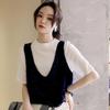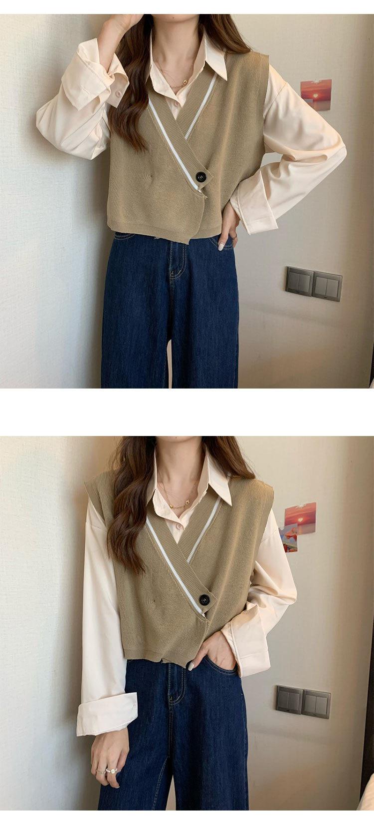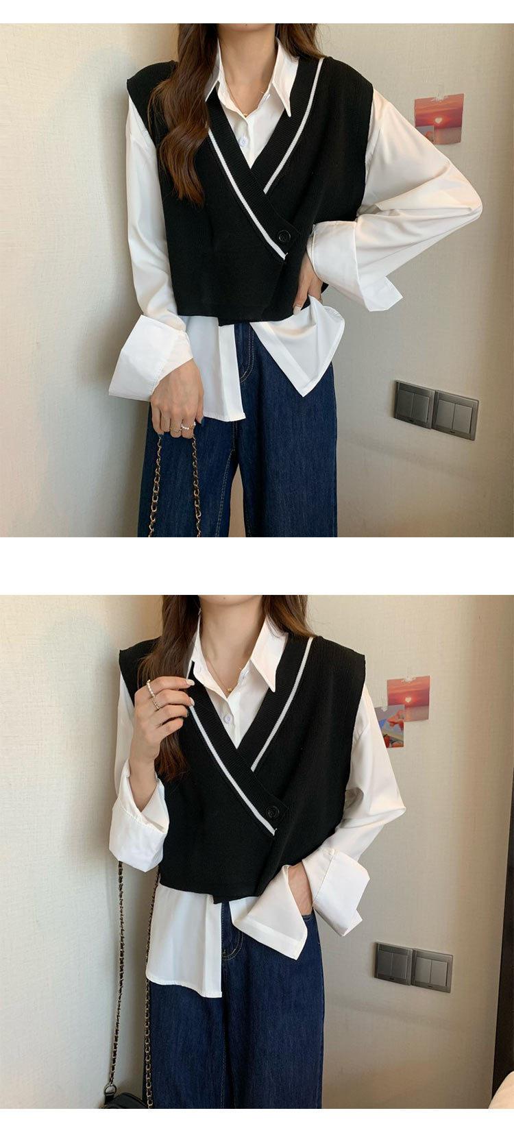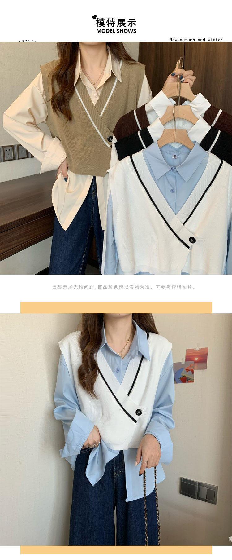 Cárdigan de punto sin mangas con cuello en V para otoño e invierno, chaleco a juego de colores, top corto de un solo botón coreano nuevo y sencillo para mujer