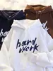Suéter Grueso con Forro Polar de Imitación de Piel de Cordero para Mujer con Capucha, Bordado de Letras, Estilo Coreano Holgado, Lana Afelpada Cálido