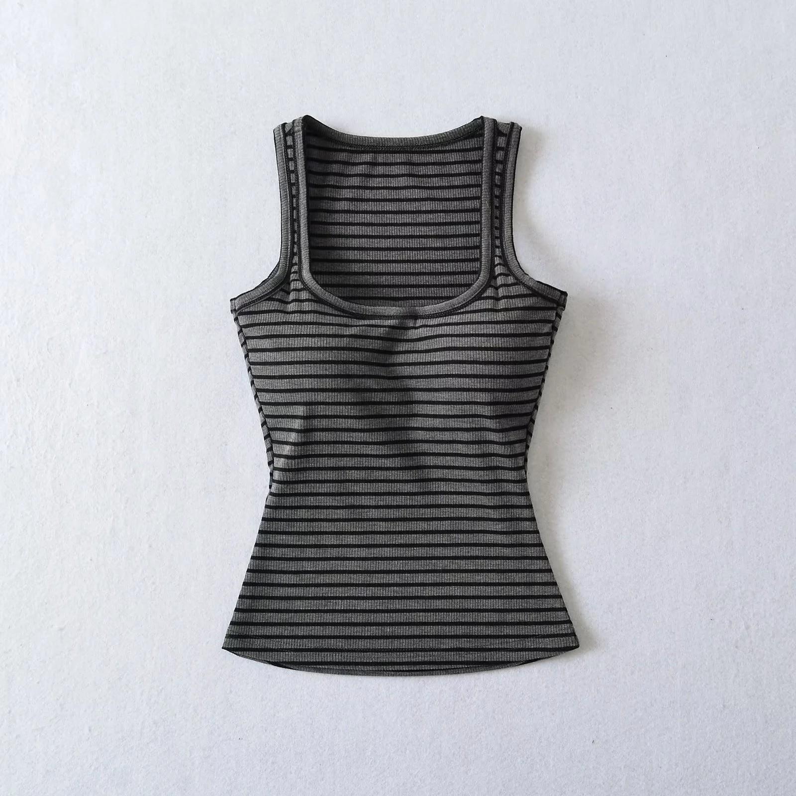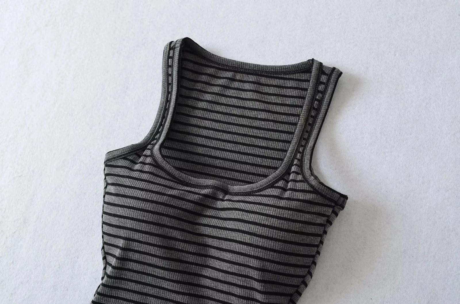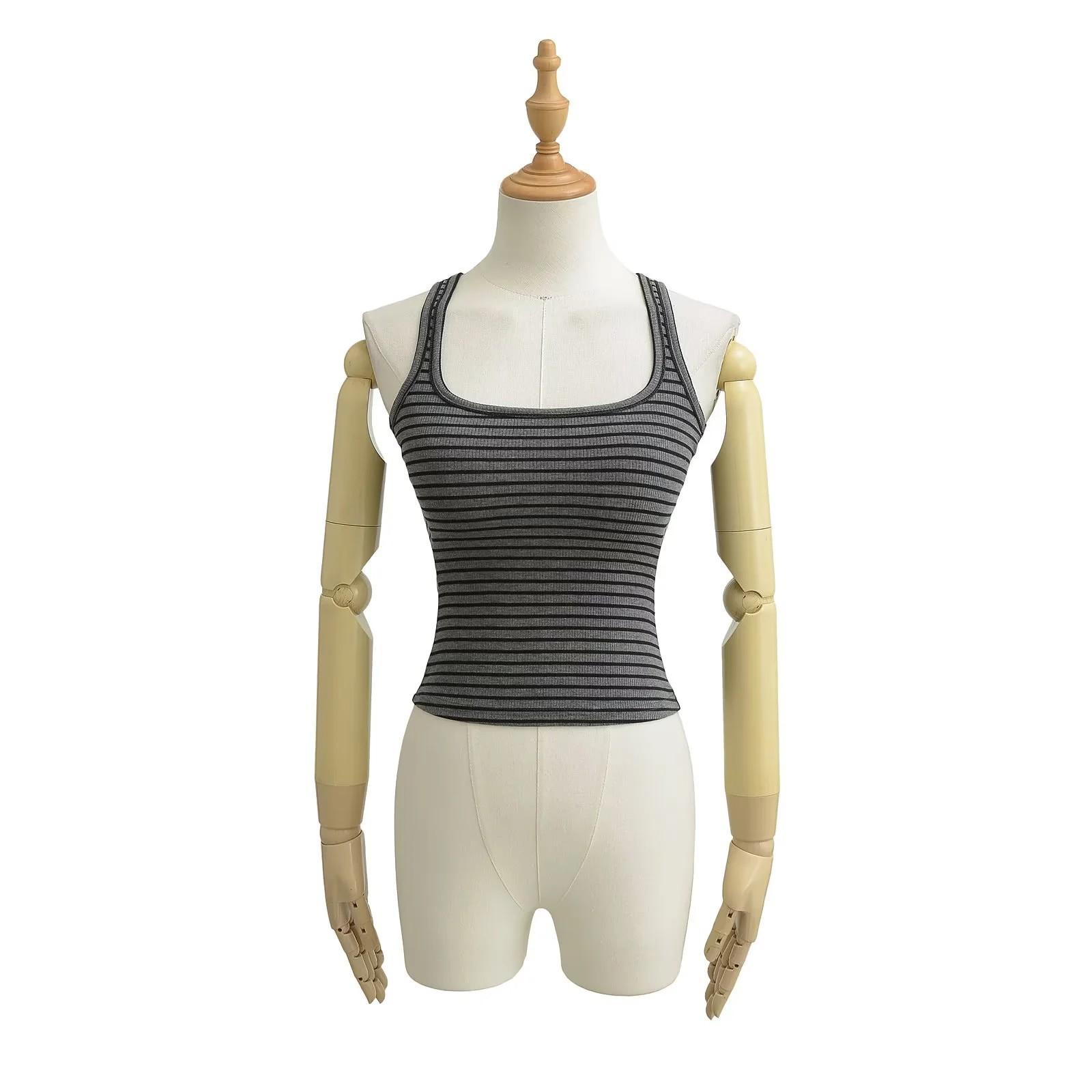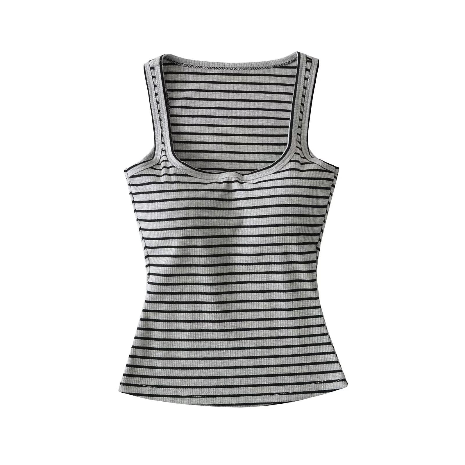 Camisola de verano con cuello cuadrado y rayas en contraste de color para mujer, hombros estrechos, corte entallado, base interior adelgazante, top sexy con especias
