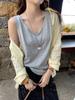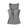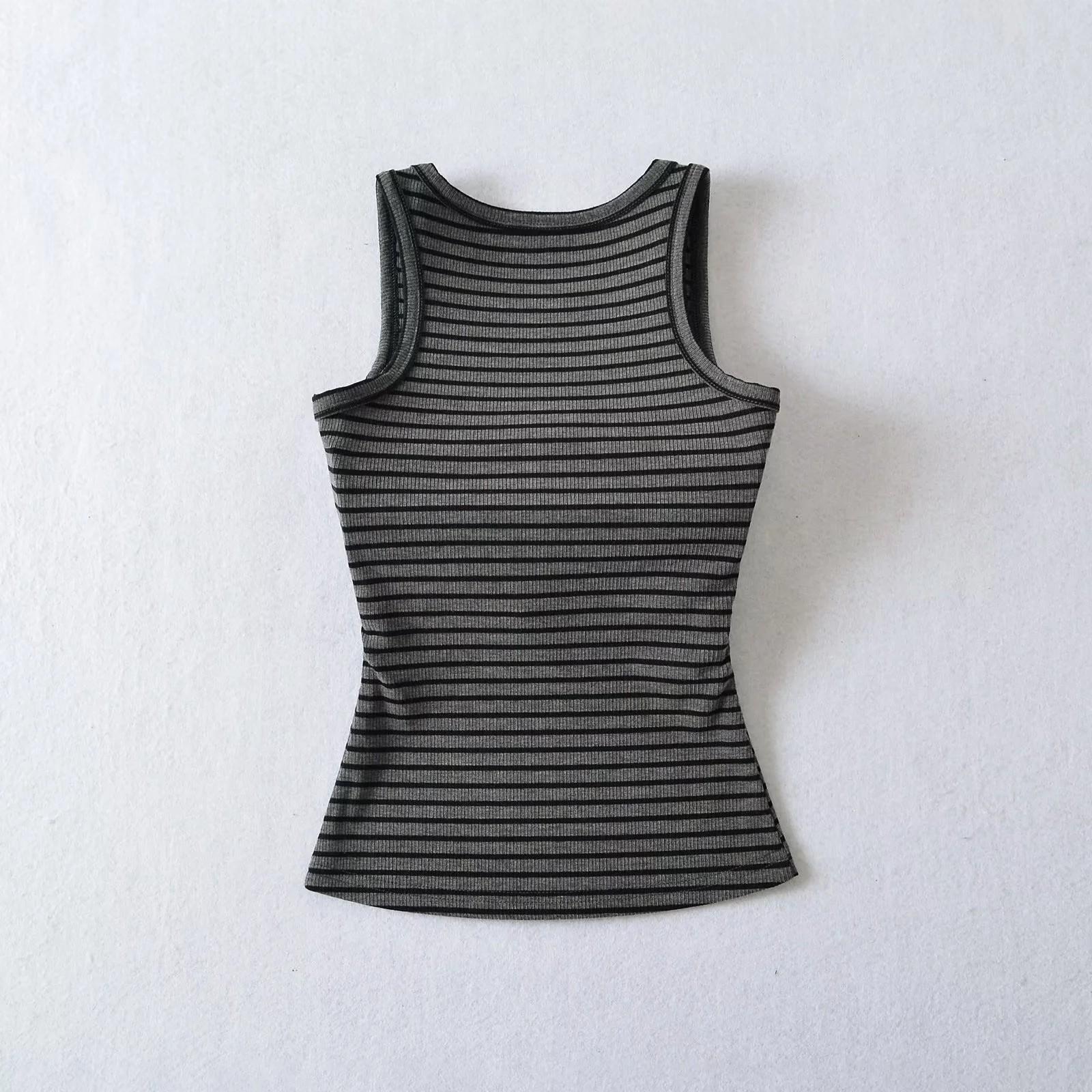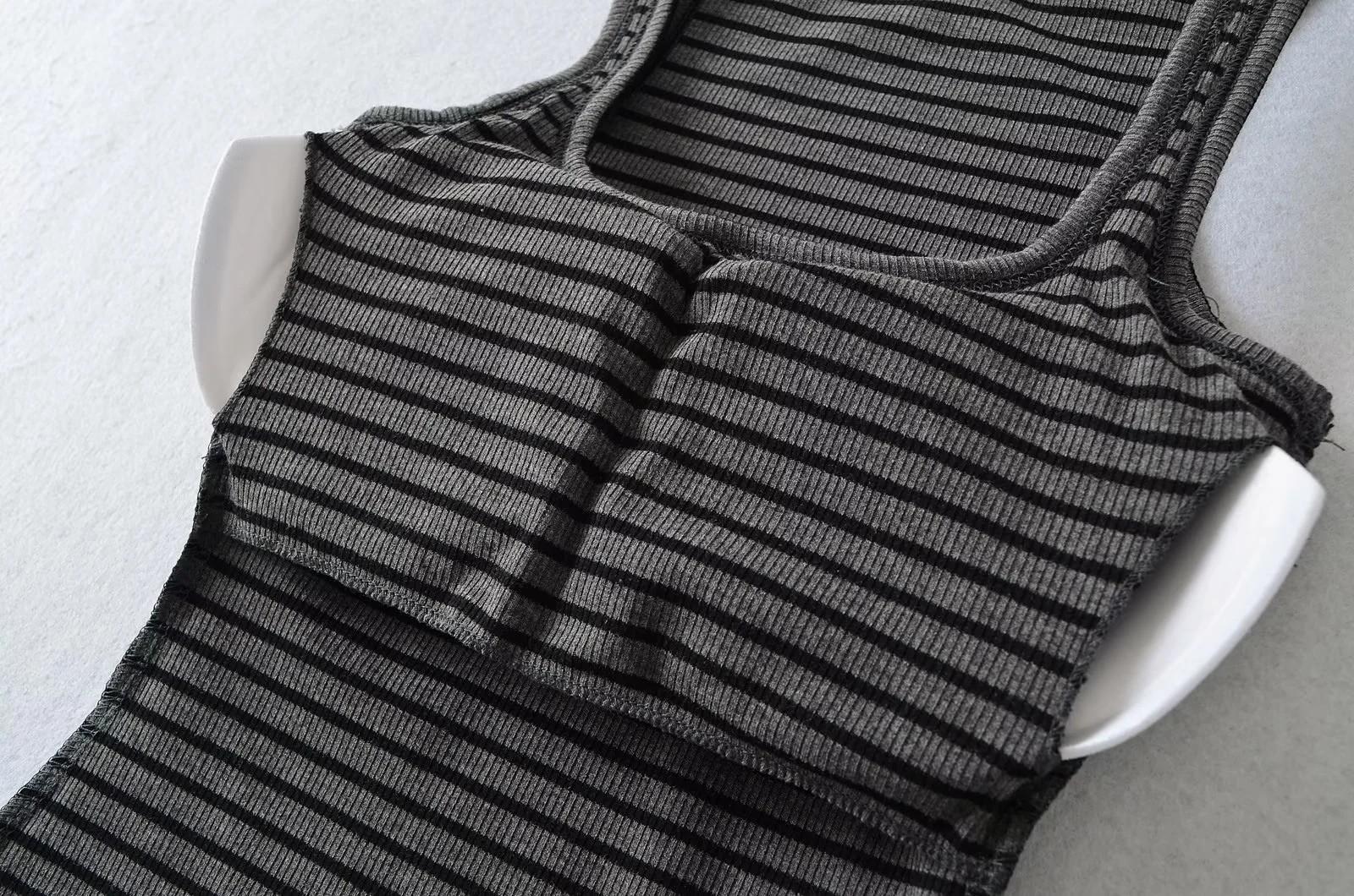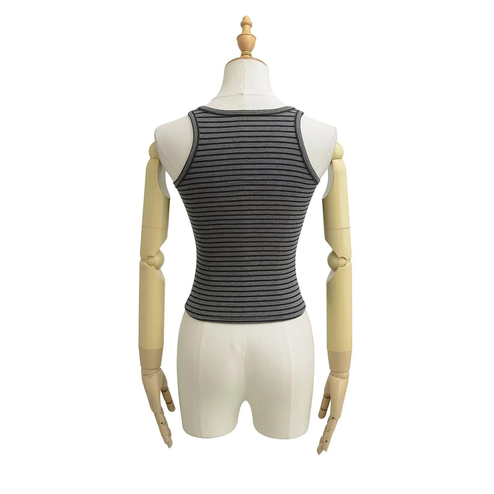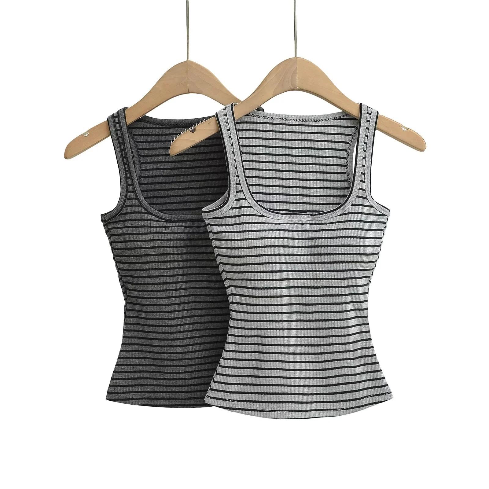 Camisola de verano con cuello cuadrado y rayas en contraste de color para mujer, hombros estrechos, corte entallado, base interior adelgazante, top sexy con especias