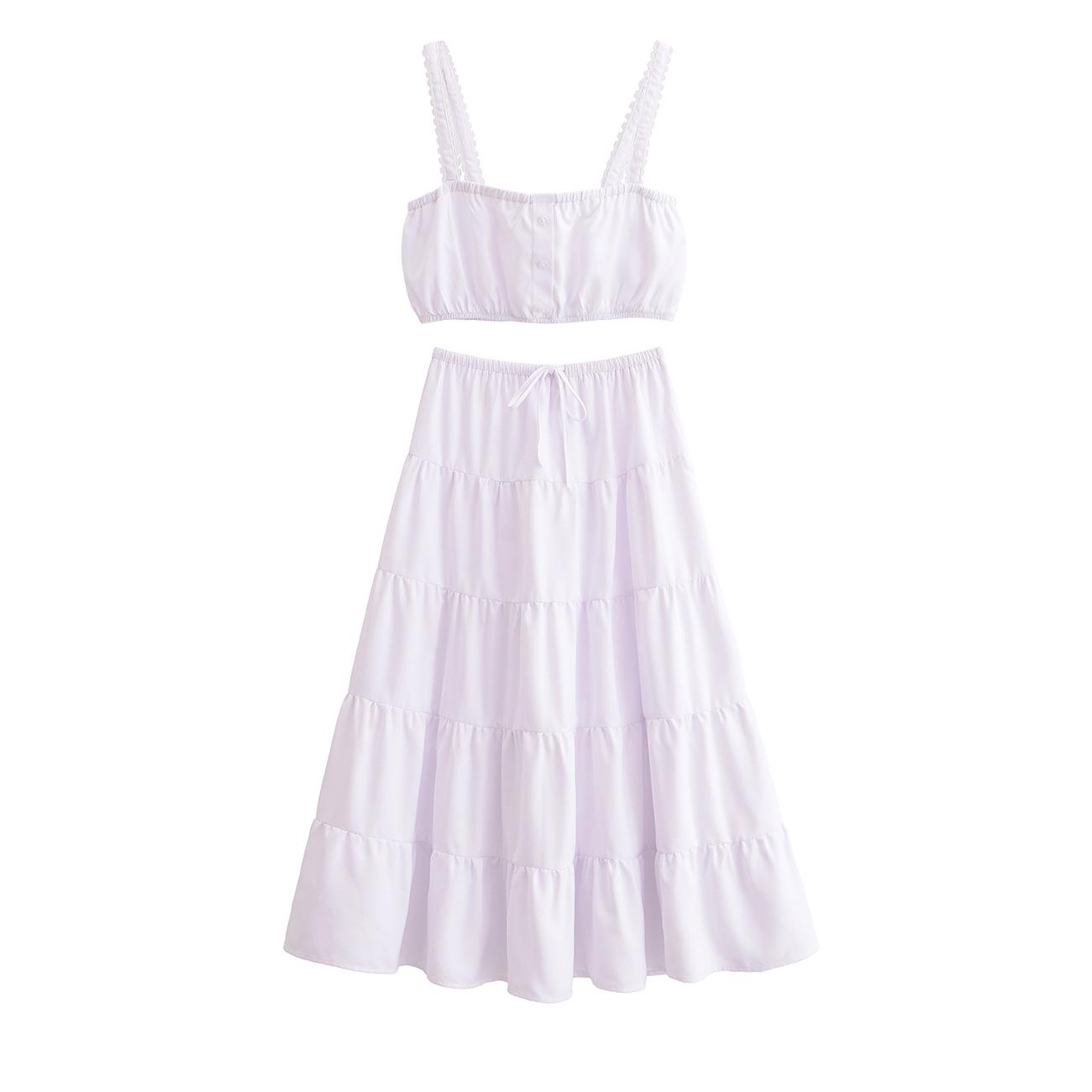 Verano 2025 Sexy Estilo Callejero Nuevo Top Hot Girl de Tirantes Envolvente + Falda Blanca Elegante