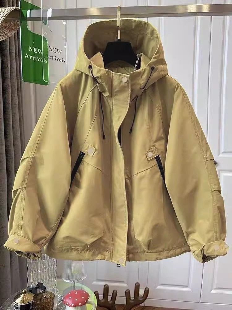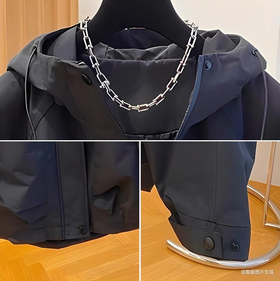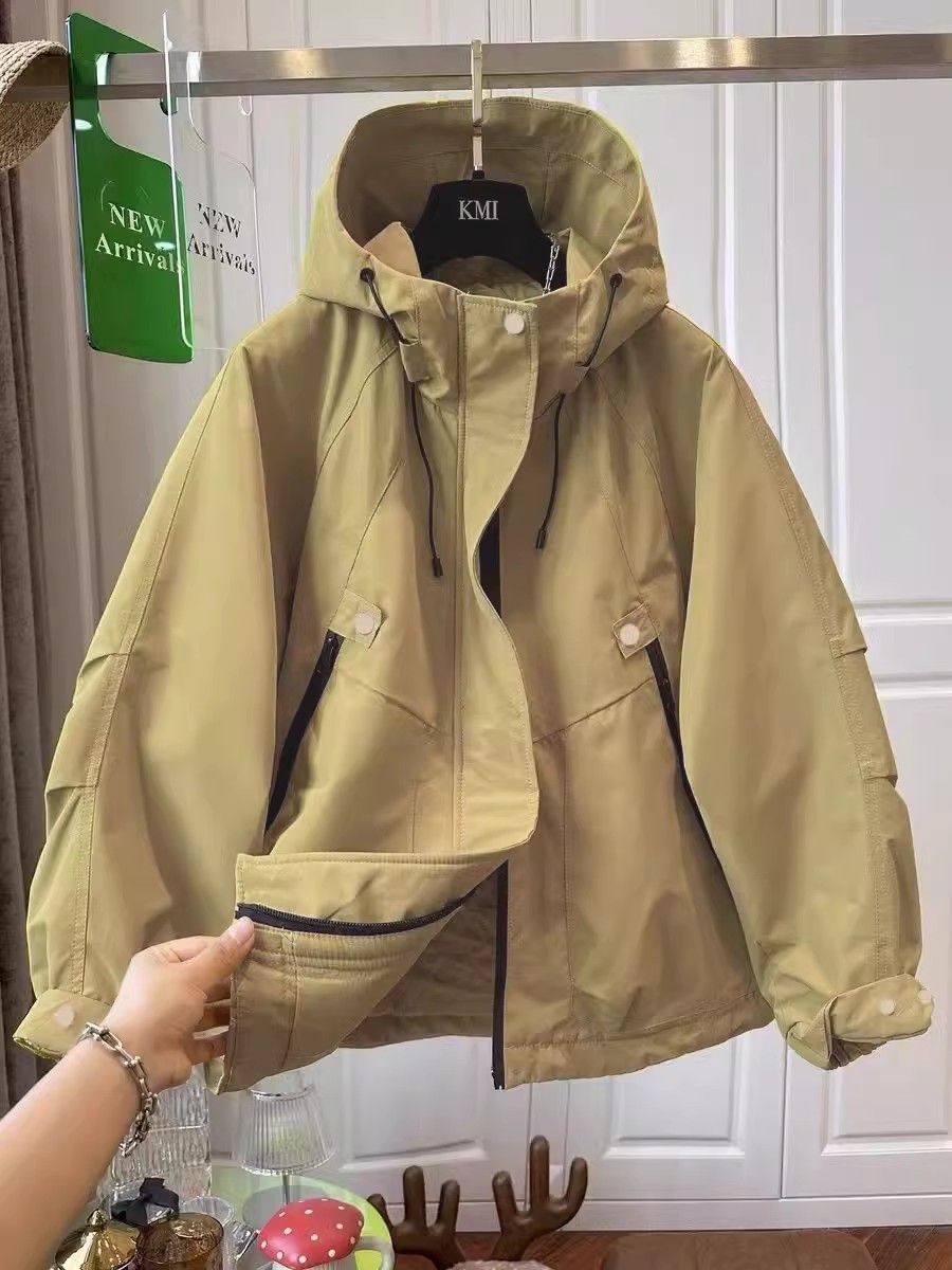 Primavera y Otoño Nuevo Casual Americano Chaqueta Corta Sentido del Diseño con Capucha Manga Larga Overol Adelgazante Combinable Suelto