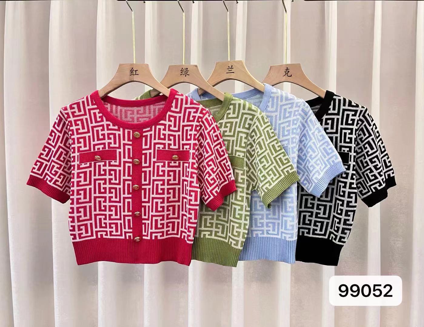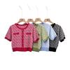 Nueva Camiseta de Punto Bordada de Manga Corta con Lazo Twist para Mujer en Verano, Elegante Top con Cuello Polo Estilo Preppy que Reduce la Edad