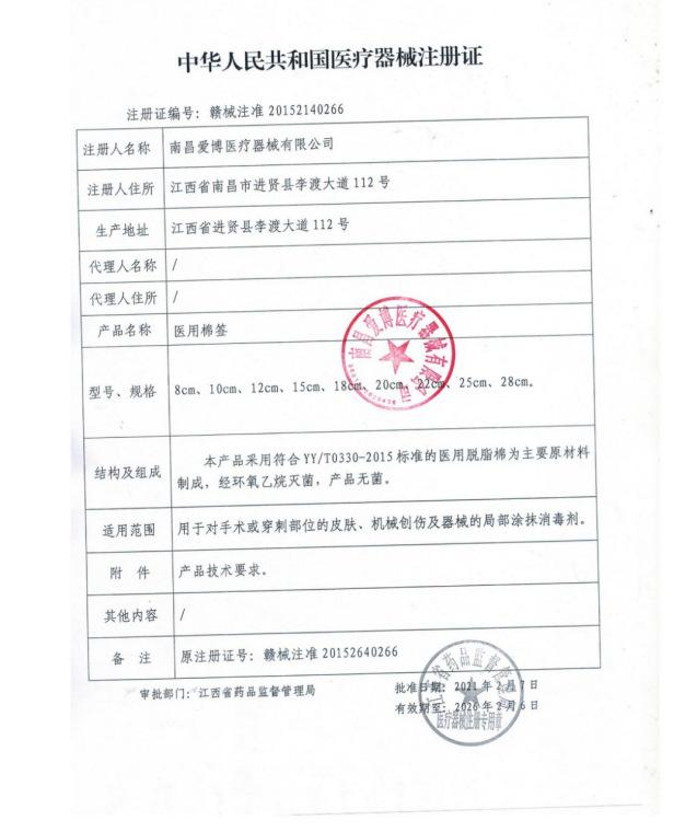 Número de Certificado de Registro: Registro de Dispositivo Médico de Gan No. 20152140266