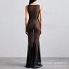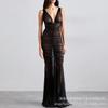 2025 Nuevo Europeo y Americano Transfronterizo Elegante y Sexy Color Puro Cuello en V Gasa Ajustado Vestido de Tirantes Falda Larga para Mujer