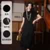 Vestido cheongsam vintage ajustado, elegante, nuevo estilo chino, para mujer, estilo nacional, mejorado, de alta gama, exquisito, negro, de verano.