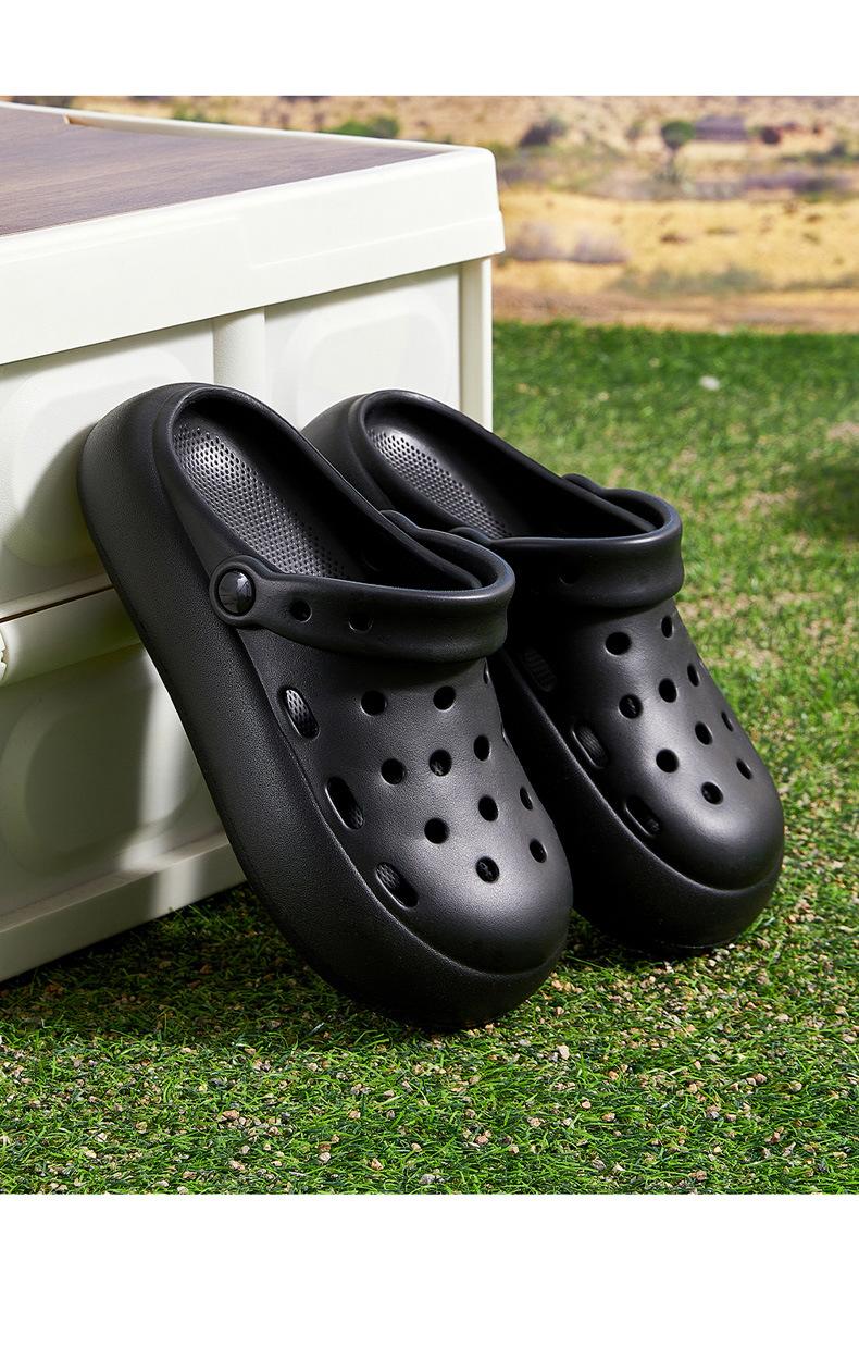 2025 Nuevo Color Sólido Engrosado Zapatos con Agujeros Sandalias y Pantuflas de Mujer EVA para el Hogar