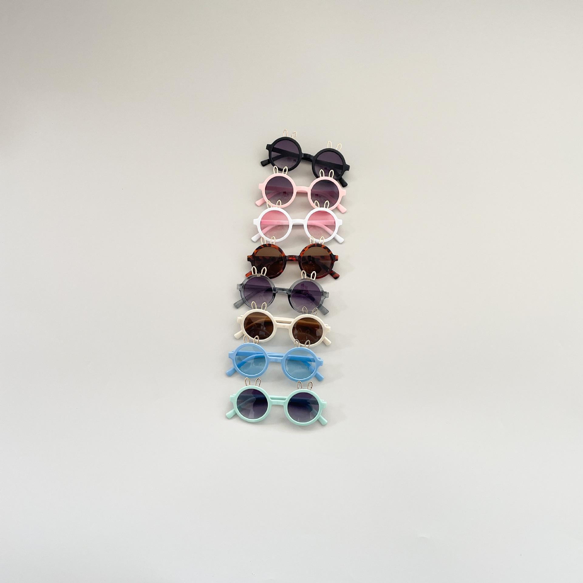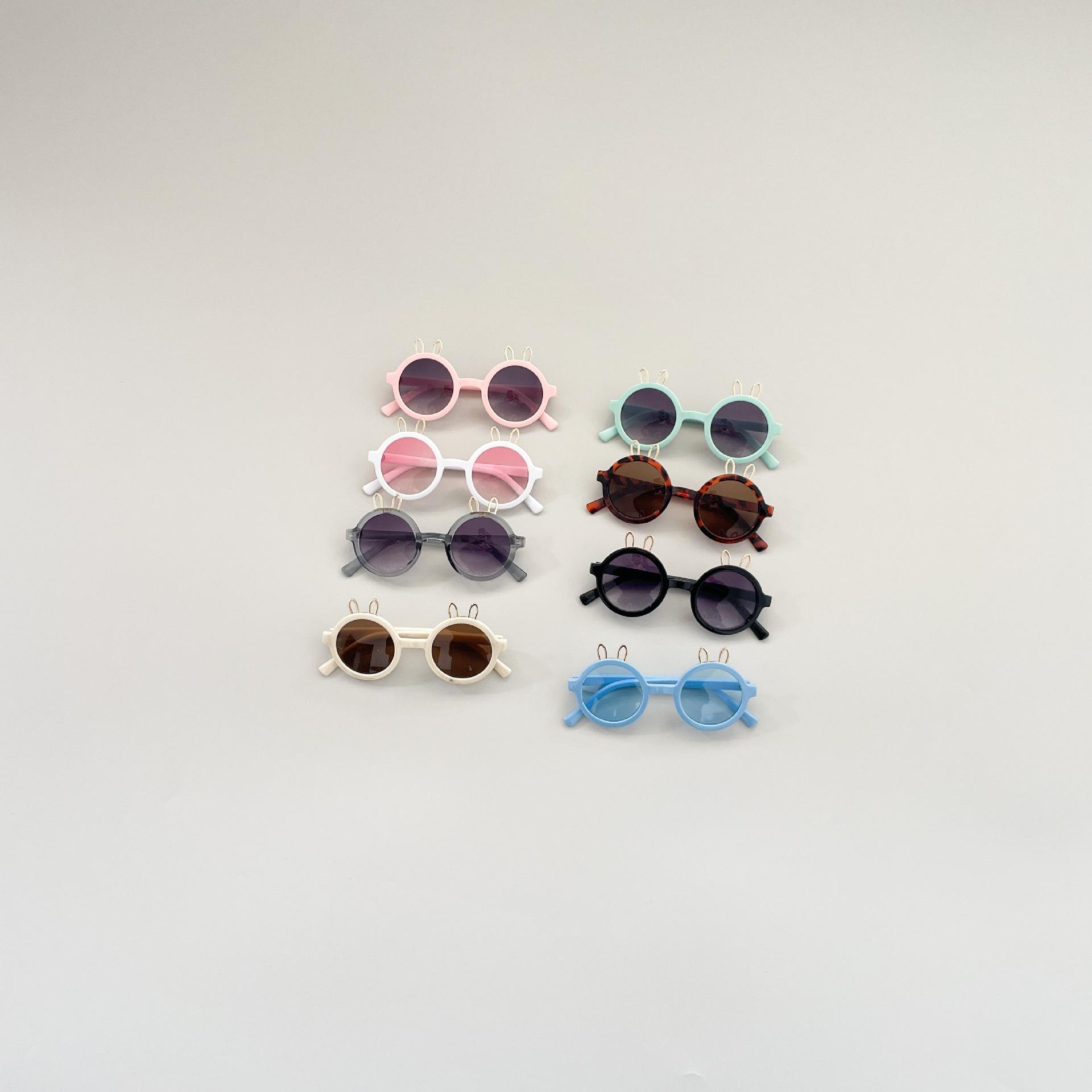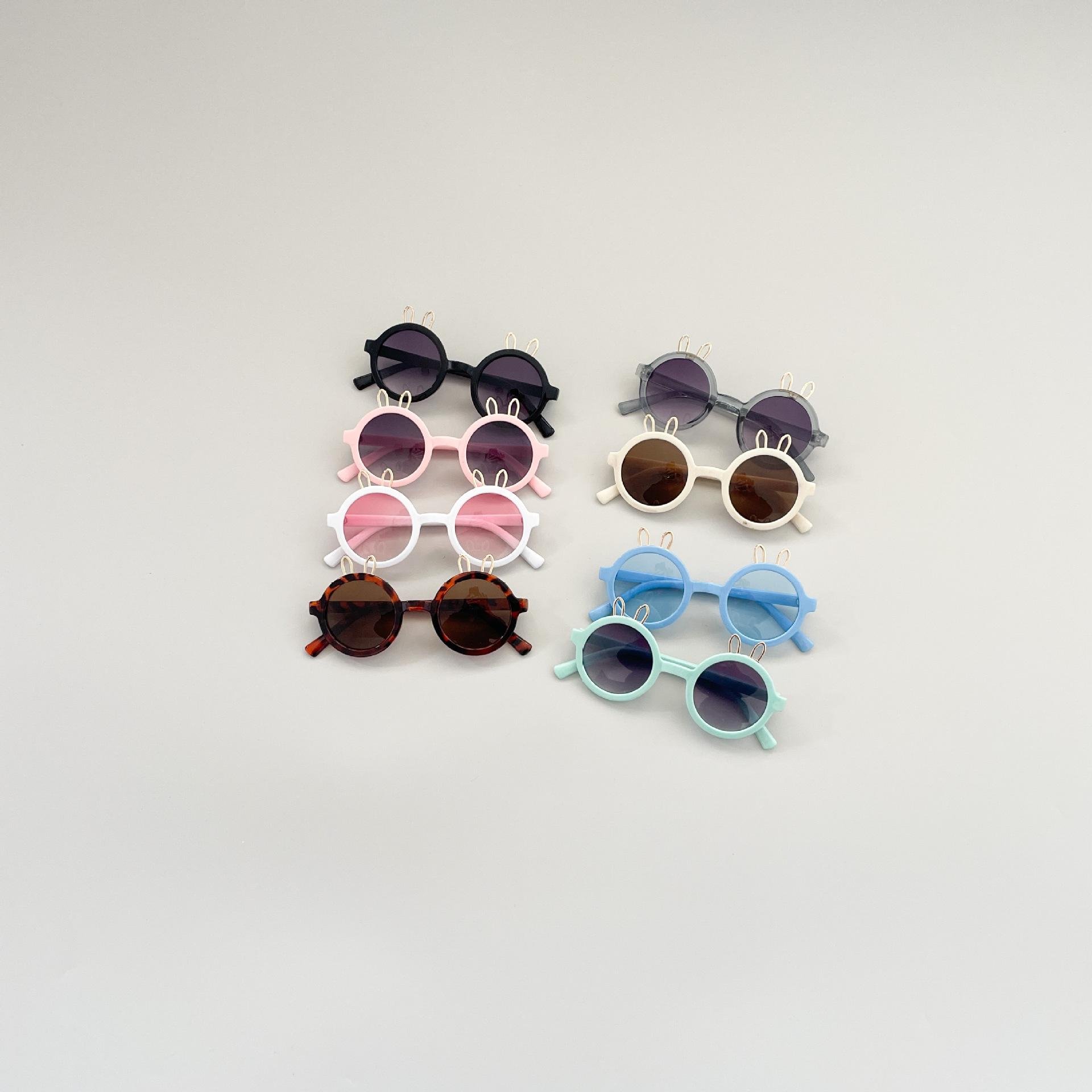 Gafas de Sol Personalizadas de Primavera Temprana con Orejas de Conejo y Marco Redondo Grande para Niños y Niñas con Forma Cóncava, Color Sólido, Borde Envolvente, Estilo Occidental