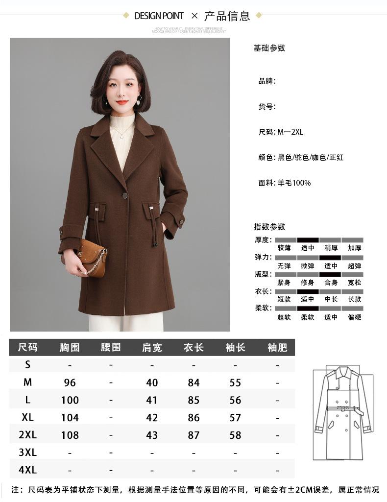 Abrigo Elegante de Lana para Madre Otoño e Invierno Abrigo de Lana de Lana de Doble Cara de Cachemira para Mujeres de Mediana Edad y Mayores Estilo Occidental de Largo Medio